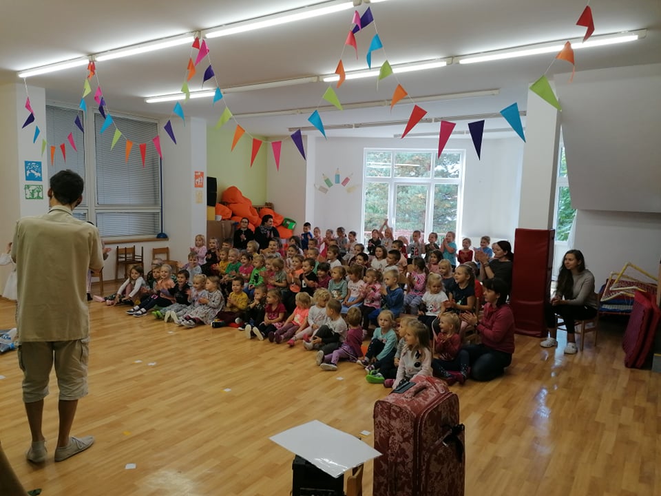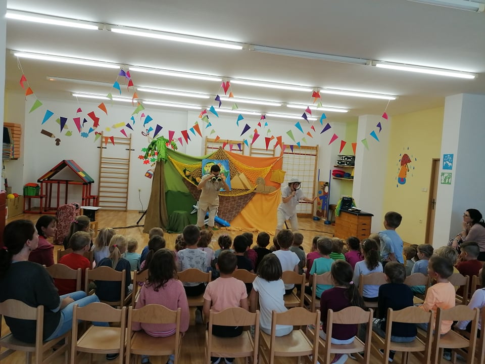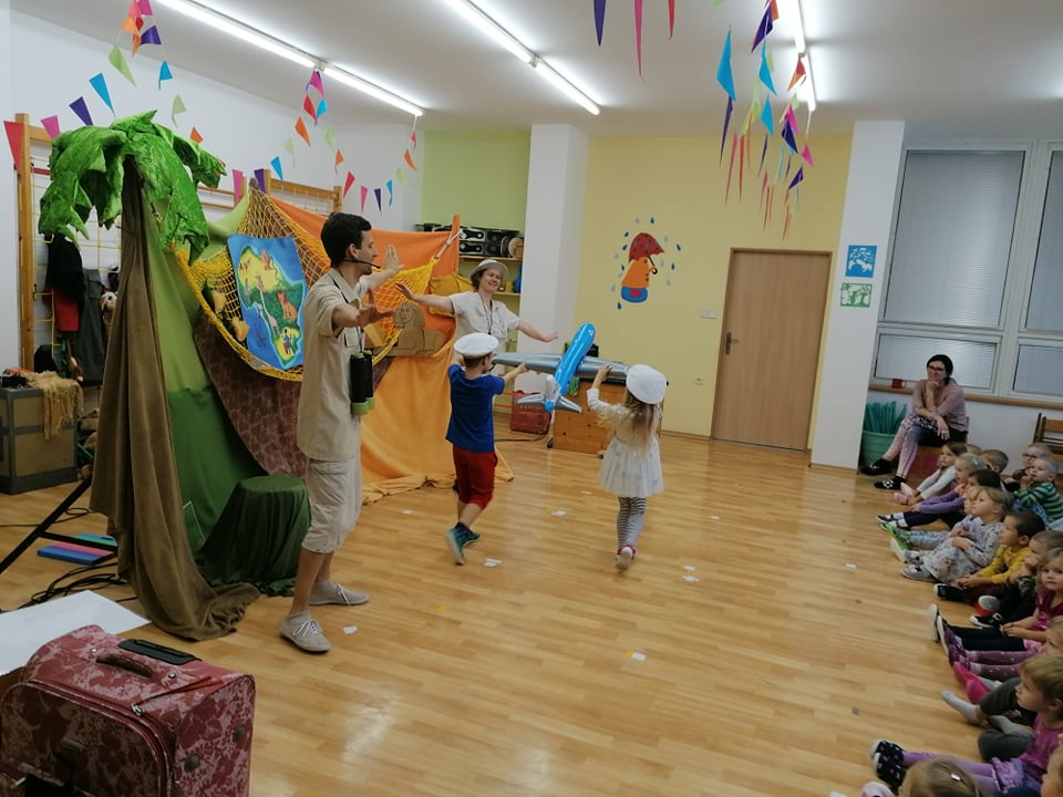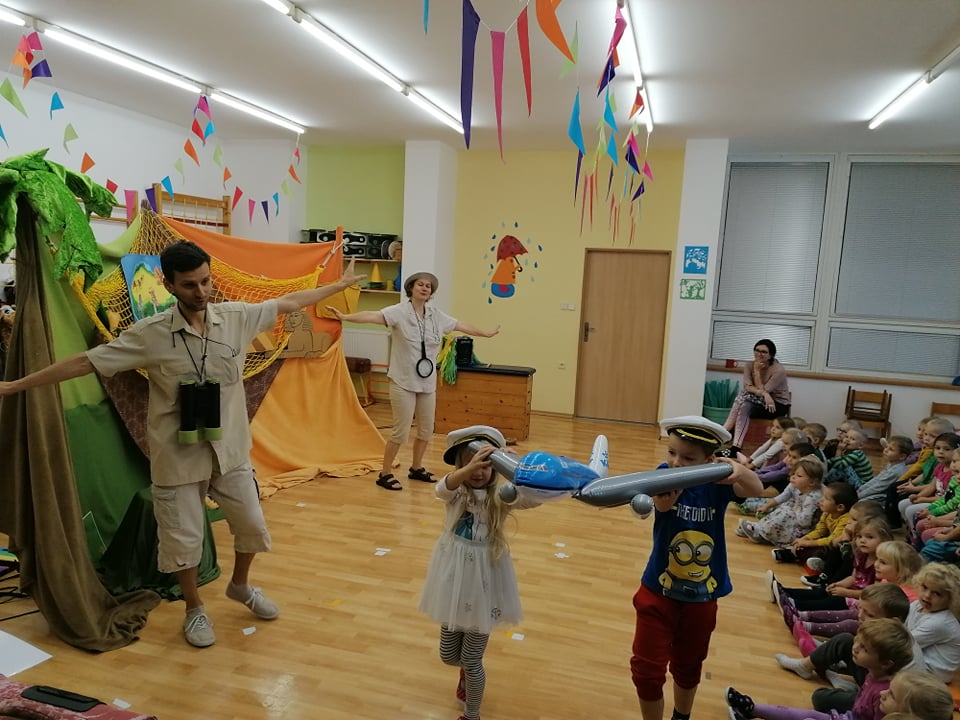 První říjnový den přiletělo do školky divadlo Letadlo s krásným představením Průzkumníci v Africe.