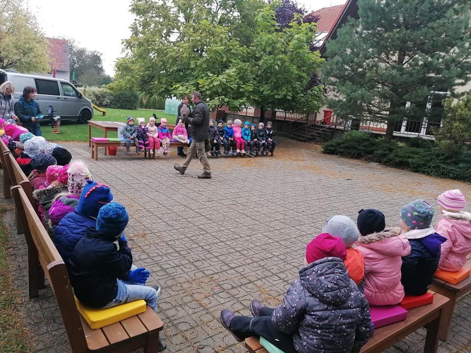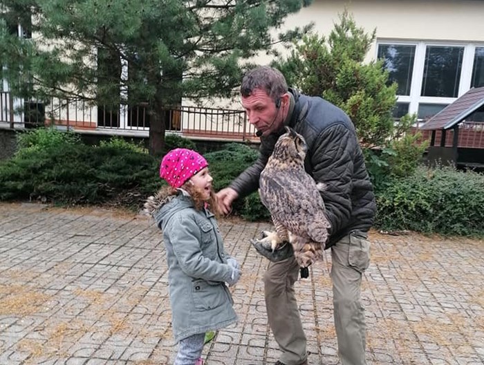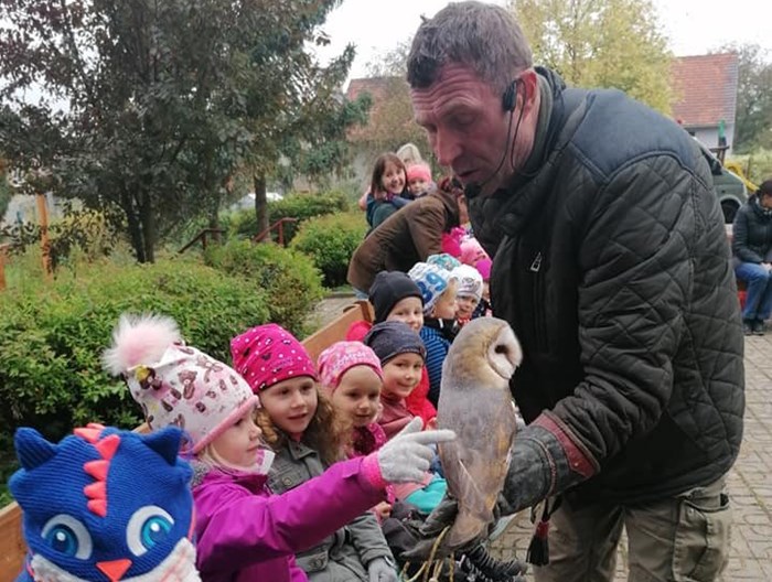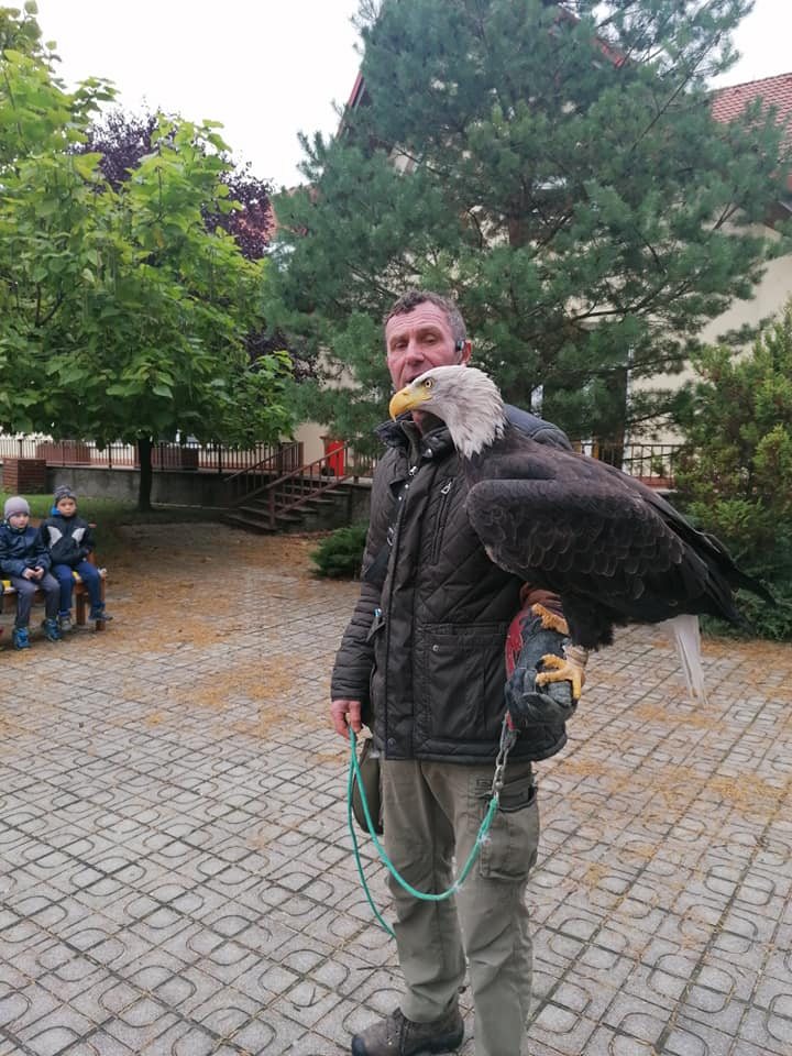V pátek 15. října 2021 přijel na návštěvu za dětmi z mateřské školy pan sokolník se svými ptáčky. Zajímavým a poutavým způsobem nám je představil, ukázal a dokonce jsme si mohli některé i pohladit.