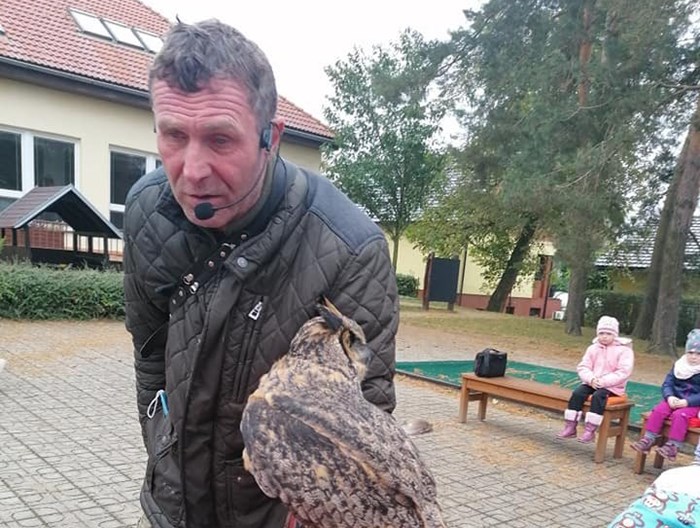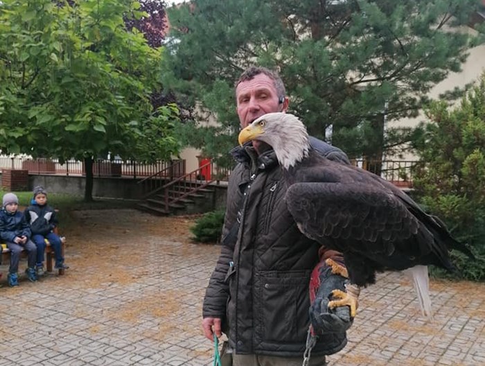 V pátek 15. října 2021 přijel na návštěvu za dětmi z mateřské školy pan sokolník se svými ptáčky.