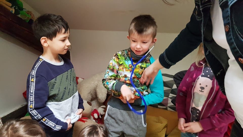 Děti si vyzkoušely oxymetr a poslechly své srdíčko. Potom nás čekalo milé občerstvení a na závěr jsme hledali čokoládového zajíčka na zahradě.
