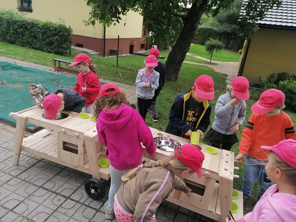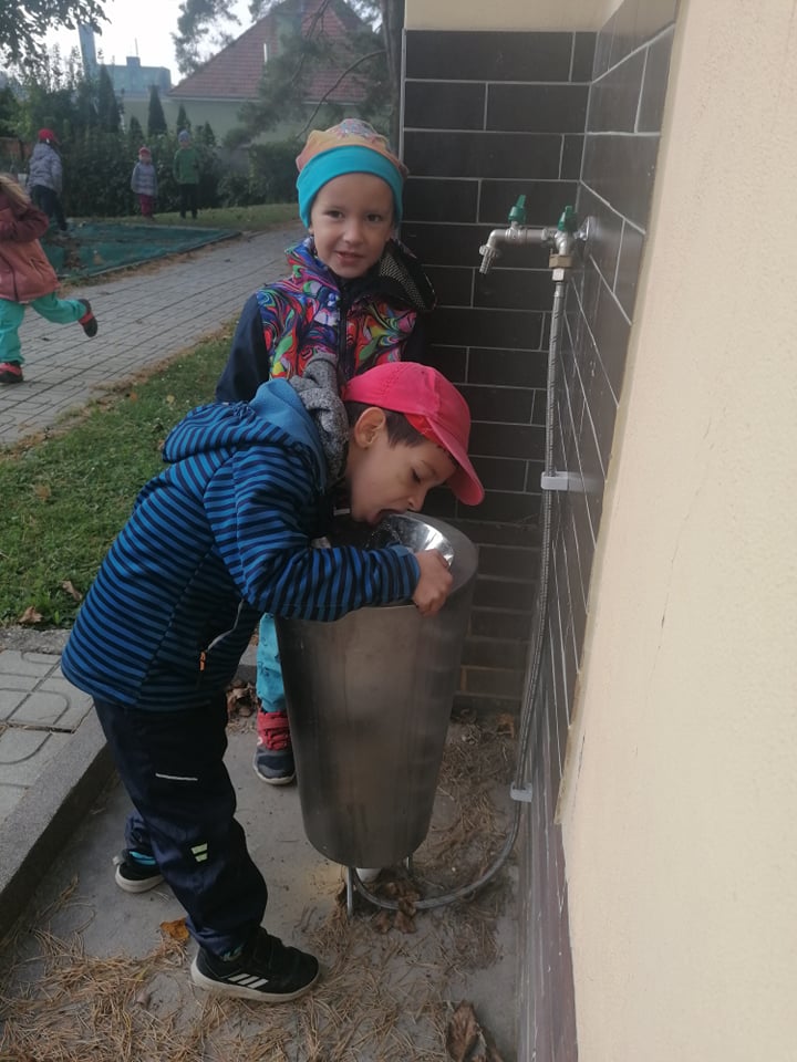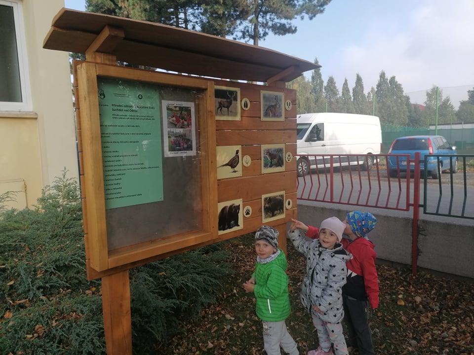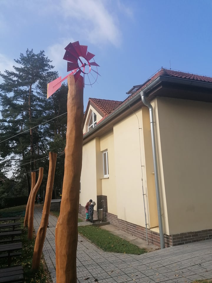 Školní zahrada se nám rozrostla o další krásné nové prvky jako např. dřevěné venkovní kuchyňky, pítko, dřevěný xylofon, dřevěné kůly, na kterých budou v horkých dnech stínící plachty, větrnou korouhev a dvě naučné tabule u vstupů do mateřské školy. Meteobudku jsme vybavili nejen retro domečkem pro určování počasí, ale také rosničkami a teploměrem.