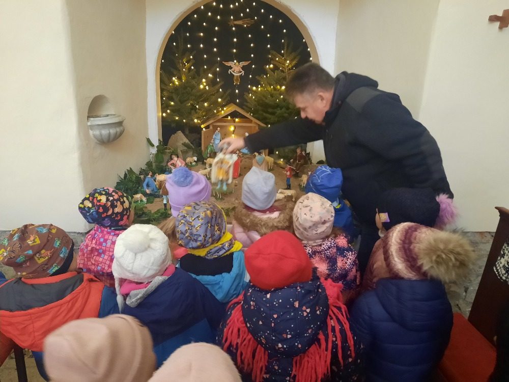 V pátek 6. 1. 2023 Jsme s dětmi ze třídy Broučků navštívili kostel Nejsvětější Trojice místní římskokatolické farnosti. Děti si zde prohlédly krásný betlém, pojmenovaly jednotlivé betlémské postavičky, a také si zazpívaly známé vánoční koledy.