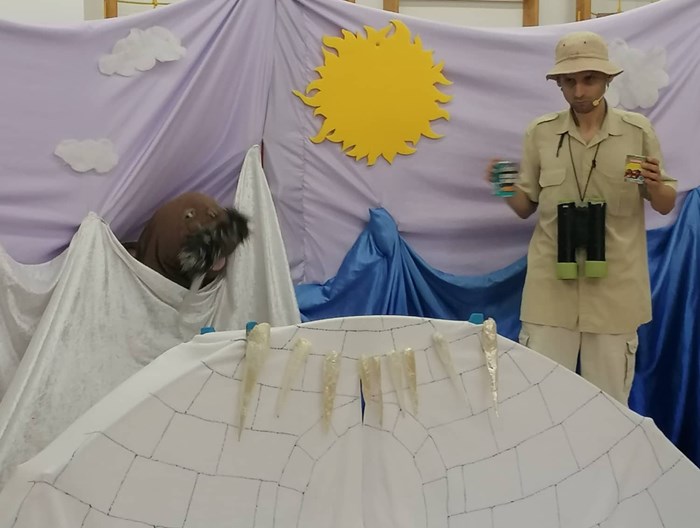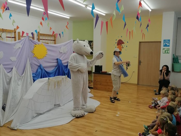 Do mateřské školky přijeli dva průzkumníci, kteří putovali za ledním medvědem. Divadlo Letadlo představilo dětem velmi zábavný příběh prokládaný písněmi a vtáhli děti do děje i osobním zapojením.