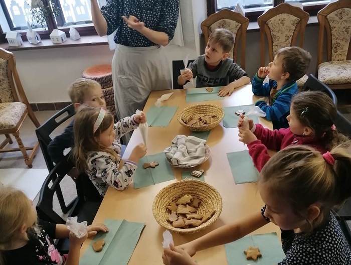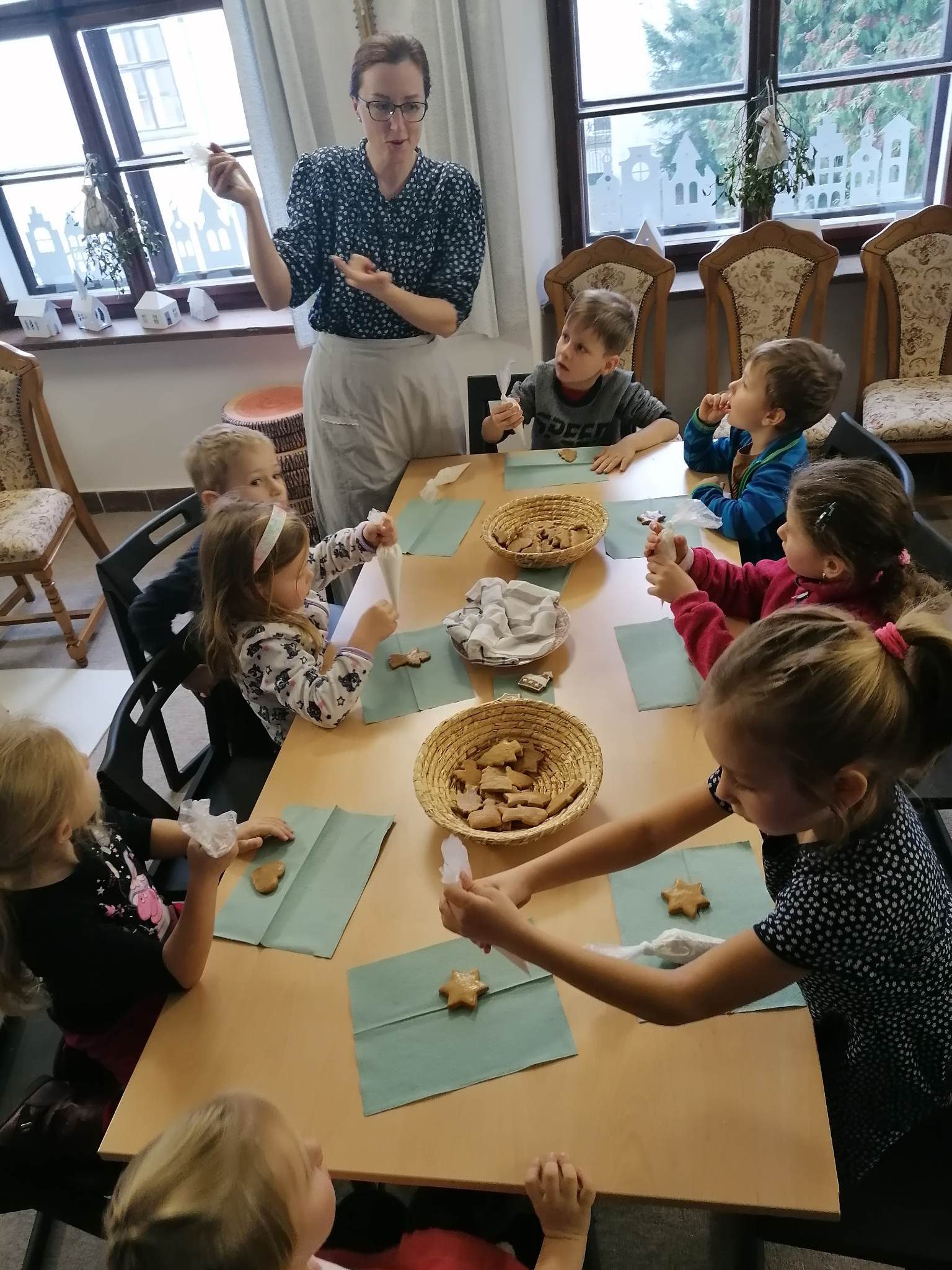 Krásný edukační program v Žerotínském zámku s názvem „Vánoce ve městě“ nám připomněl atmosféru adventního času. Děti si vyslechly vyprávění o vánočních zvycích našich prarodičů, zazpívaly si vánoční koledy s doprovodem tahací harmoniky, ozdobily si baňku i vánoční perníček, slepily linecké cukroví a vyrobily ozdůbku na stromeček s vůní medu.