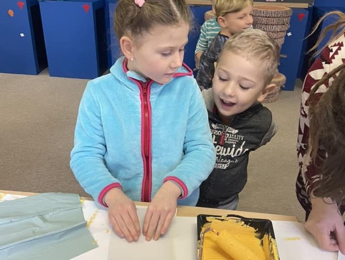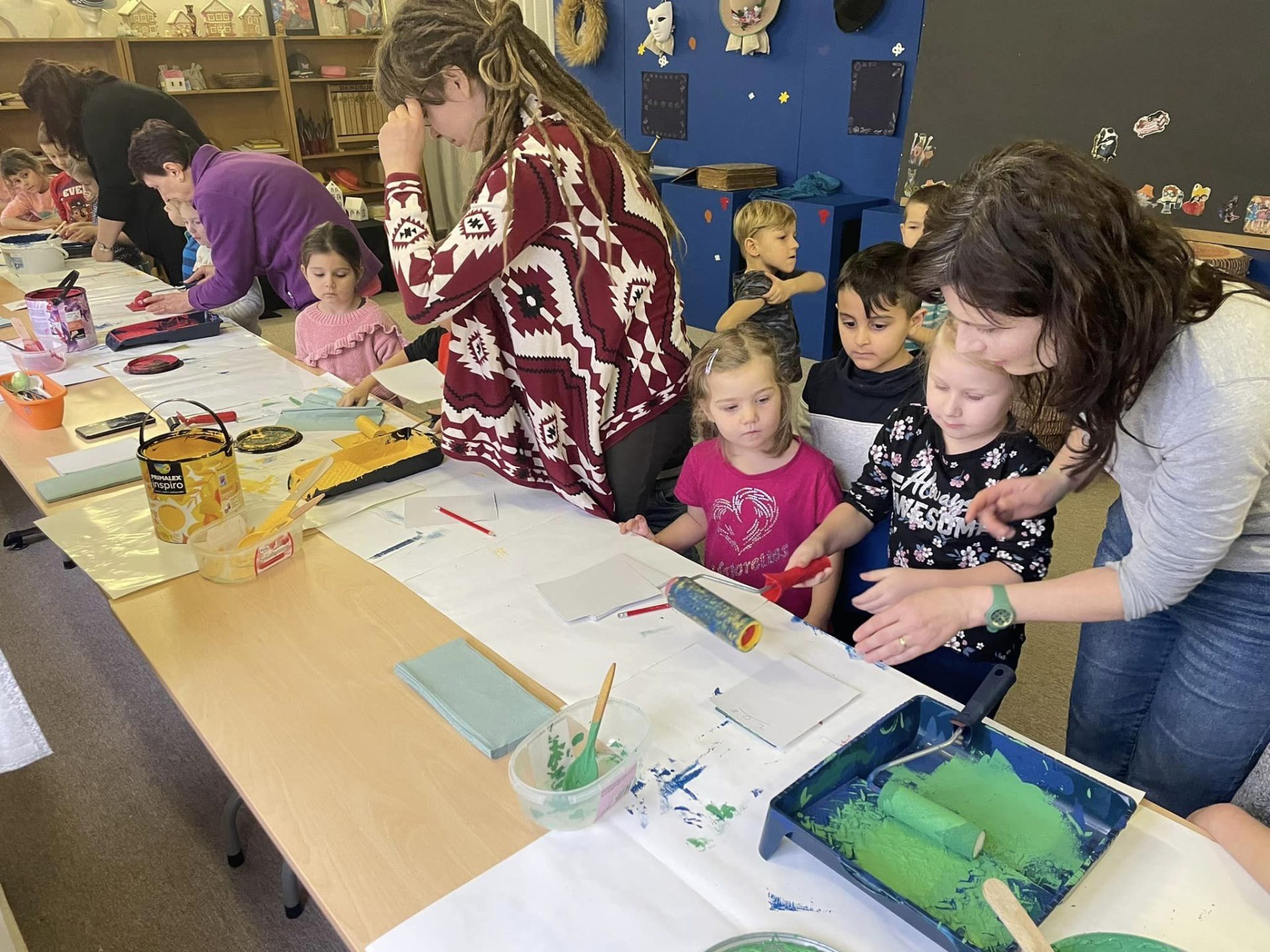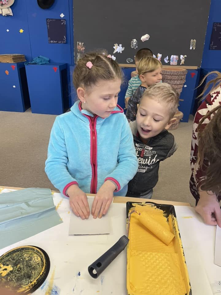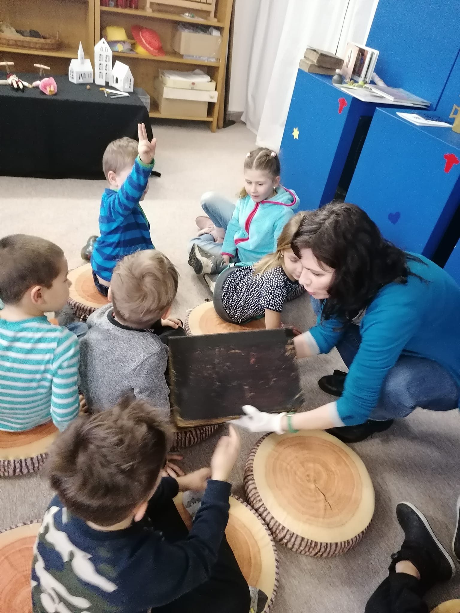 Na edukačním programu se děti dověděly, jak vypadaly první písemné záznamy, historické tištěné knihy a čím a na co lidé psali. Jednoduchým tiskem s různými motivy si děti vyrobily svou knížku.