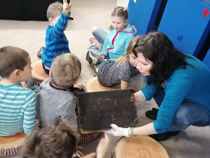Na edukačním programu se děti dověděly, jak vypadaly první písemné záznamy, historické tištěné knihy a čím a na co lidé psali.