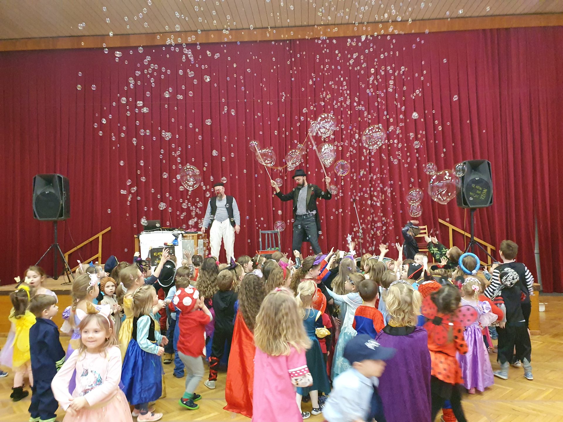 Měsíc únor je časem masopustů, karnevalů a masek. Nebylo tomu jinak ani u nás ve školce. Děti se převlékly do kostýmů princezen, superhrdinů, víl, zvířátek, nejrůznějších povolání a jiných roztodivností. Zábavou nás provedli dva Klauni na volné noze, Alois a Bedřich, kteří si připravili spoustu her, tanečních soutěží a bublin. Za sponzoring mnohokrát děkujeme celému SRPŠ.