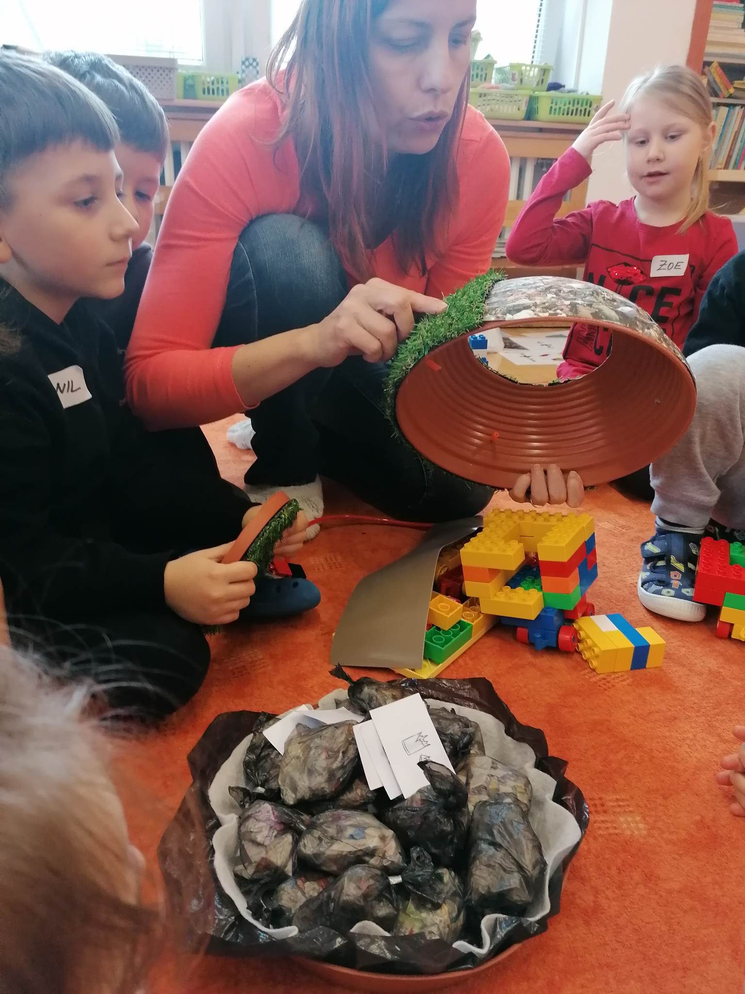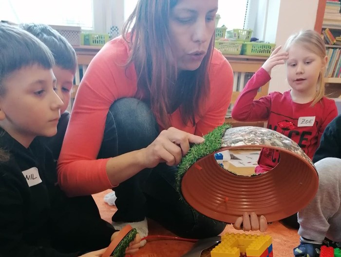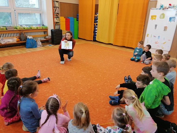 V rámci týdenního tématu Slavíme Den Země zavítala do oddělení Hvězdiček paní lektorka Iveta z Malé technické univerzity s edukačním programem Malý zpracovatel odpadu.