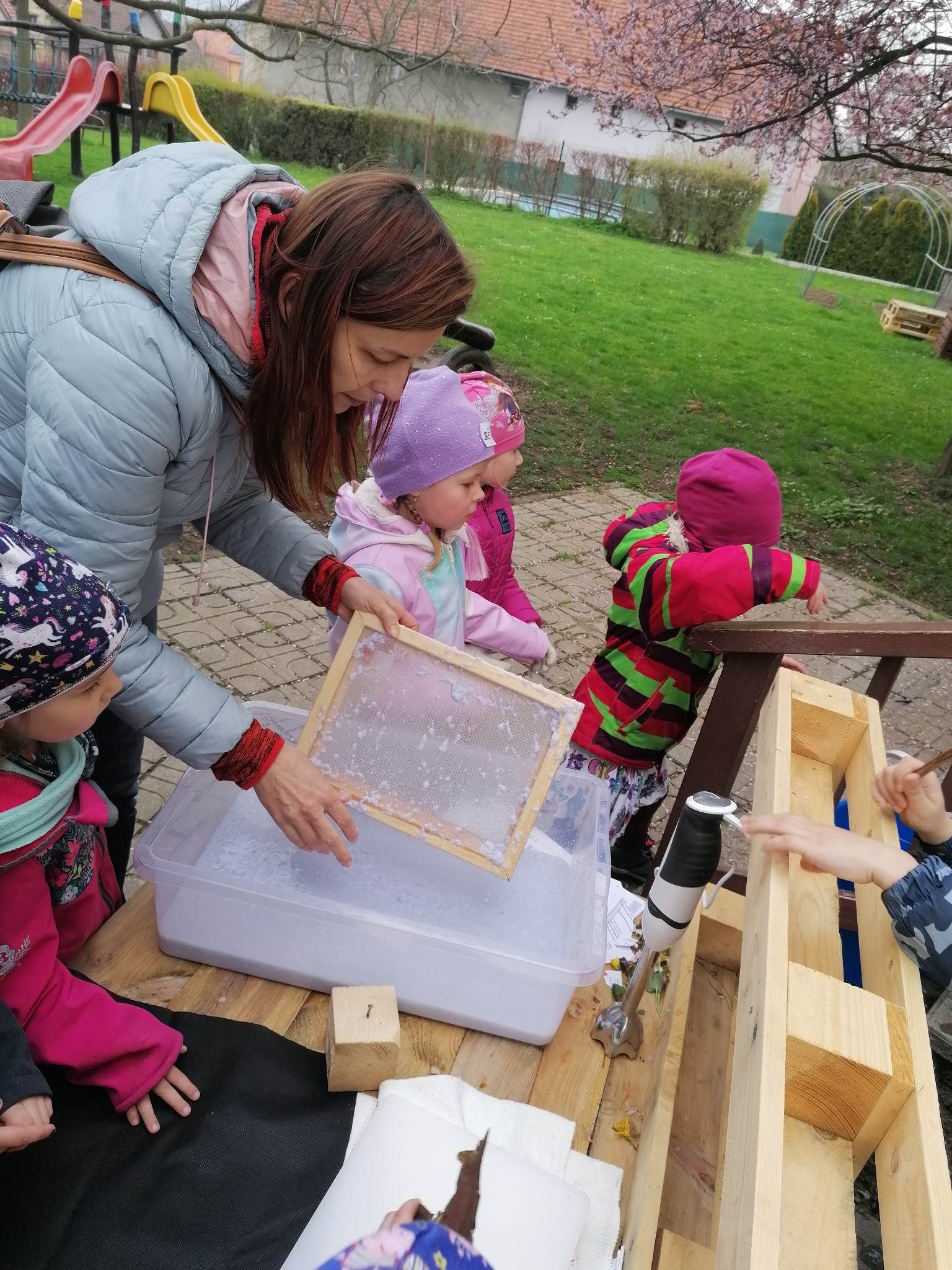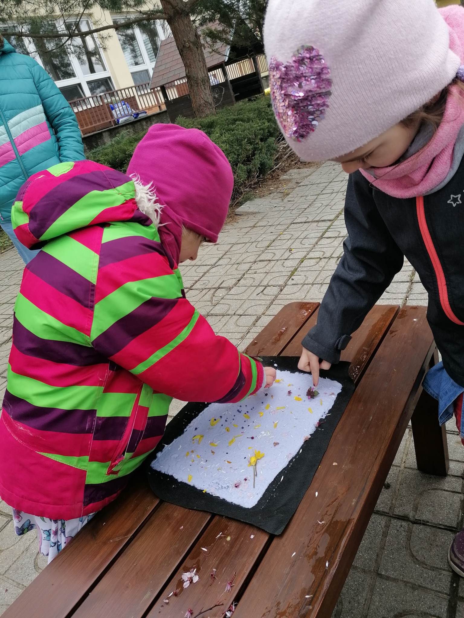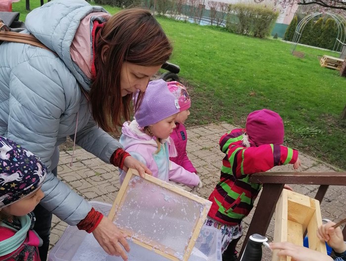 V rámci týdenního tématu Slavíme Den Země zavítala do oddělení Hvězdiček paní lektorka Iveta z Malé technické univerzity s edukačním programem Malý zpracovatel odpadu. Děti se pod jejím vedením ocitly v roli zpracovatele odpadů, dověděly se, kde končí směsný odpad, založily povolenou skládku, seznámily se s tím, co je to odvětrání a izolace skládky a k čemu slouží, co na skládku nepatří, co je to třídění odpadu a recyklace. Při pobytu venku si vyrobily (zrecyklovaly) papír.