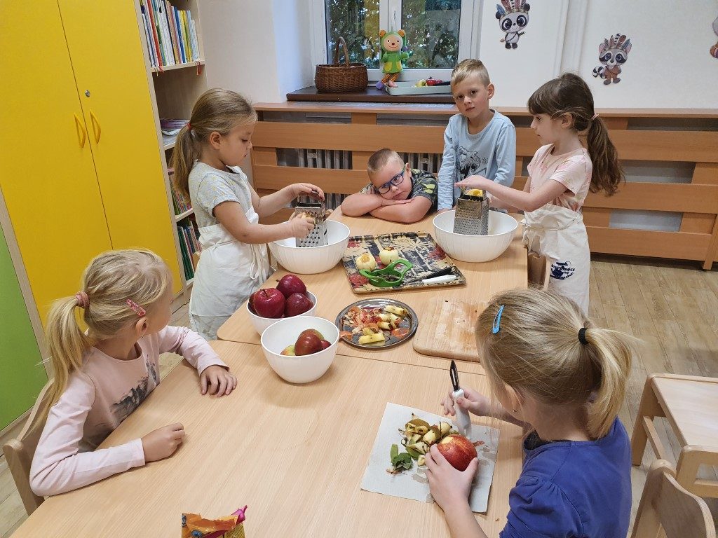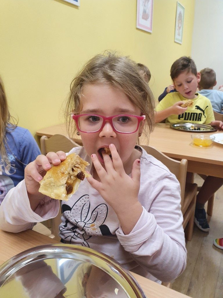 A máme tady podzim. S podzimem přichází sklizeň jablíček, a proto jsme se s dětmi ze třídy Soviček pustili do pečení štrúdlů. Vyzkoušeli jsme školní cvičnou kuchyňku, kde jsme si štrúdly upekli a připravili si i teplý dětský punč.