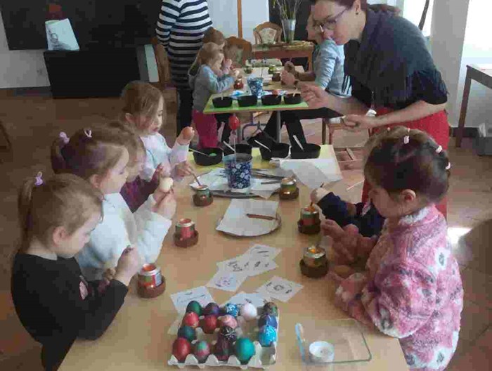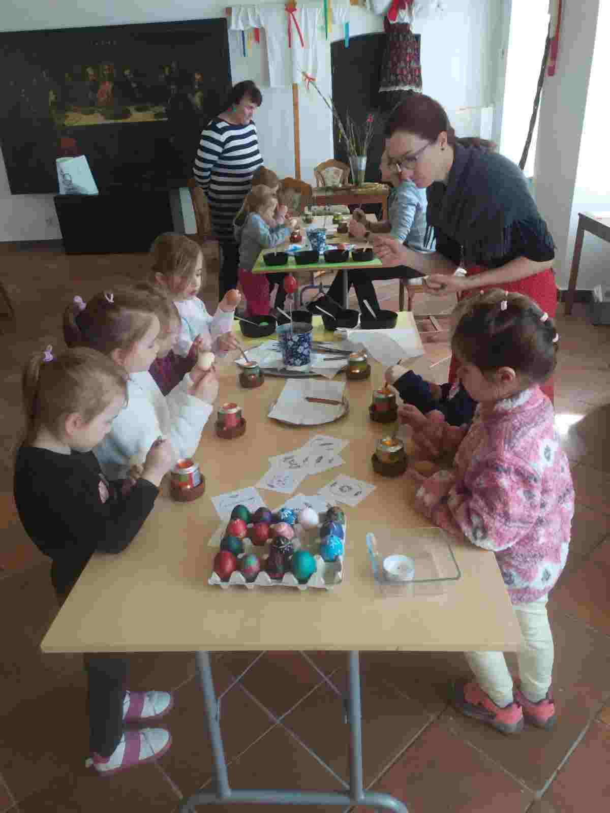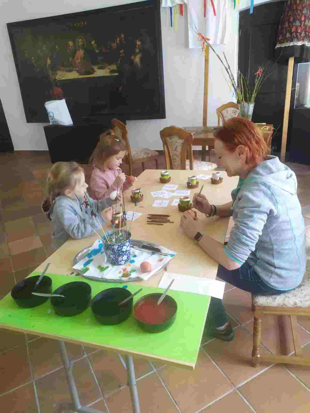 Ve středu 29. 3. 2023 jsme se všichni společně vydali autobusem do muzea v zámku v Novém Jičíně na vzdělávací program „Velikonoce v muzeu“. Cestou do muzea jsme šli přes vyzdobené náměstí, kde jsme nasáli tu pravou velikonoční atmosféru a ta nás pak provázela celým dnem. Seznámili jsme se s historií Velikonoc, s předvelikonočním týdnem, tradicemi a zvyky. Vyzkoušeli jsme si ozdobit křehké vyfouklé vajíčko různými způsoby – s jarními květinami, voskem. Seznámili jsme se s výrobou pomlázky – tataru a Mořeny k vynášení zimy a přivítání jara. Společně s čajem jsme ochutnali upečené jidášky z kynutého těsta. Všichni jsme si společně strávené chvíle a výlet do muzea užili.
