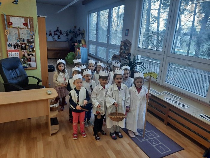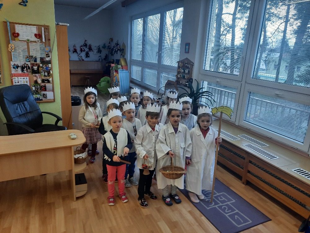 Děti ze třídy Broučků se rozloučily s adventním časem. Celý týden je při všech aktivitách provázely postavy Tří králů. Děti vyráběly královskou korunu, zahrály si na Krále a při cvičení zdolaly cestu do Betléma. V pátek 06. 01. 2023 jsme se oblékli do bílého šatu, nasadili si na hlavu vlastnoručně vyrobené korunky a za zpěvu známé koledy ,,MY TŘI KRÁLOVÉ“ jsme navštívili všechny třídy v MŠ s přáním všeho dobrého v novém roce.