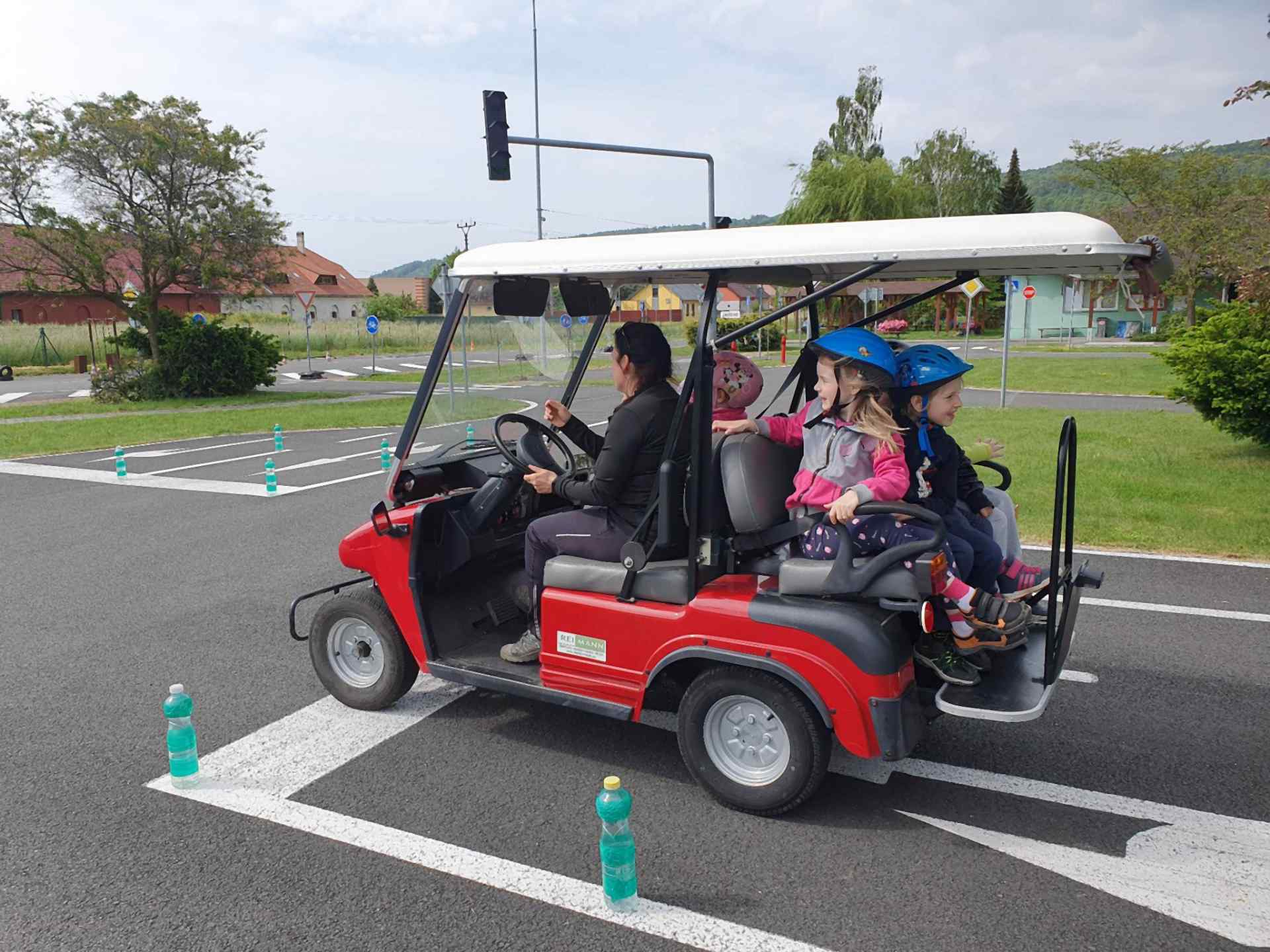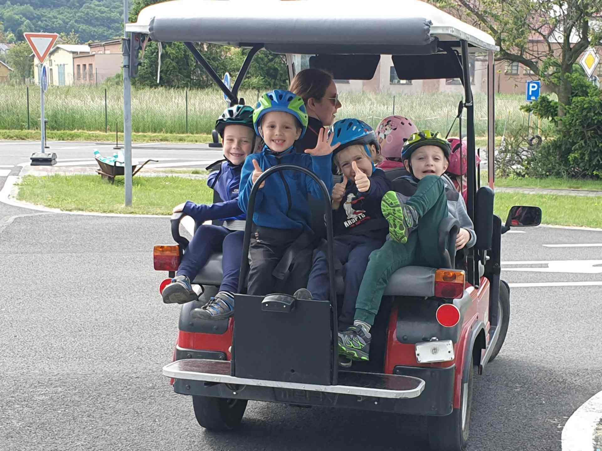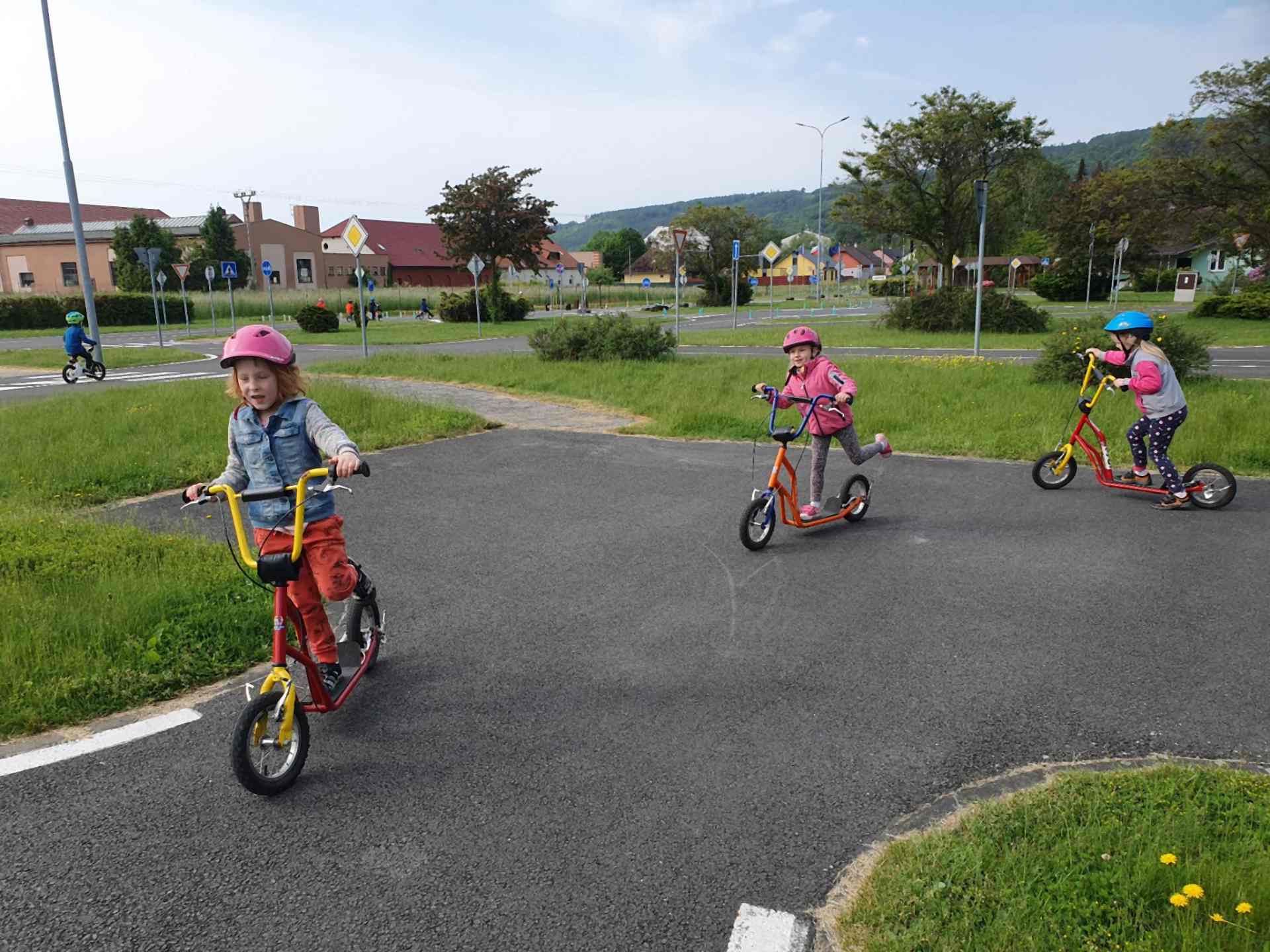 Stop. Vpravo. Dej přednost. Jeď rovně. Pozor na protisměr. Zákaz vjezdu. Dopravní hřiště nás dne naučilo dávat si pozor na pravidla silničního provozu. Jízda na koloběžce, kole i odrážedle je zábava, a proto to učení, ani tolik nebolelo. Naopak jsme si ho užili a za odměnu se svezli v elektromobilním vozítku.