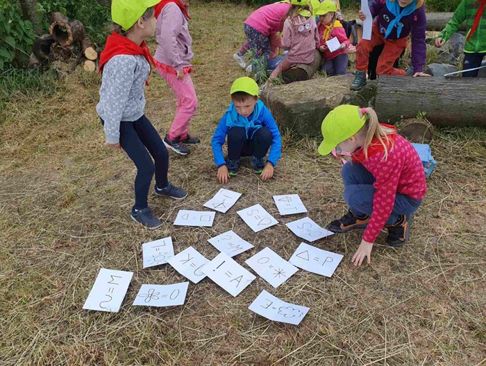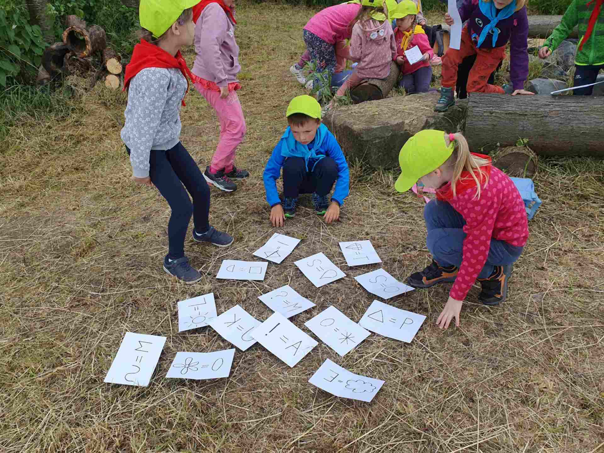 Celý rok naši třídu provázel program, který jsme nazvali Cesta za lesní pokladem. Konečně jsme na konci cesty a vydáváme se do lesa, ve kterém loupežníci nashromáždili velké bohatství, ovšem nepoctivým způsobem. Les je za trest začaroval v dílky mapy, které děti ze Soviček získaly díky zkoušce poctivosti. Poskládaly pak celou mapu, vyluštily, kde se poklad ukrývá a společně jej objevily. Po cestě zpátky jsme se dozvěděly, že ve školce nás čeká ještě jedna část pokladu a odměna pro ty, kteří se během celoročního putování dostaly nejblíže k cíli.