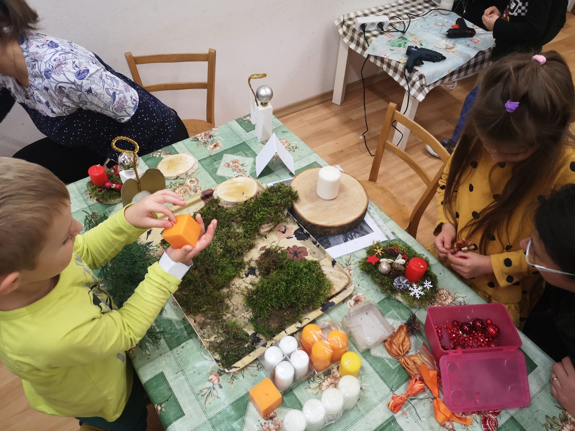 Ve středu 16. 11. 2022 si třídy Broučků a Kuřátek uspořádaly společně v příjemné vánoční atmosféře v jídelně MŠ – společné Vánoční tvoření. Děti s rodiči a prarodiči si mohly vyrobit různé vánoční svícny, několik druhů andělíčků a další vánoční ozdoby z rozmanitých materiálů. Příjemnou atmosféru při naší pilné práci doplňovaly vánoční koledy a připravené občerstvení.