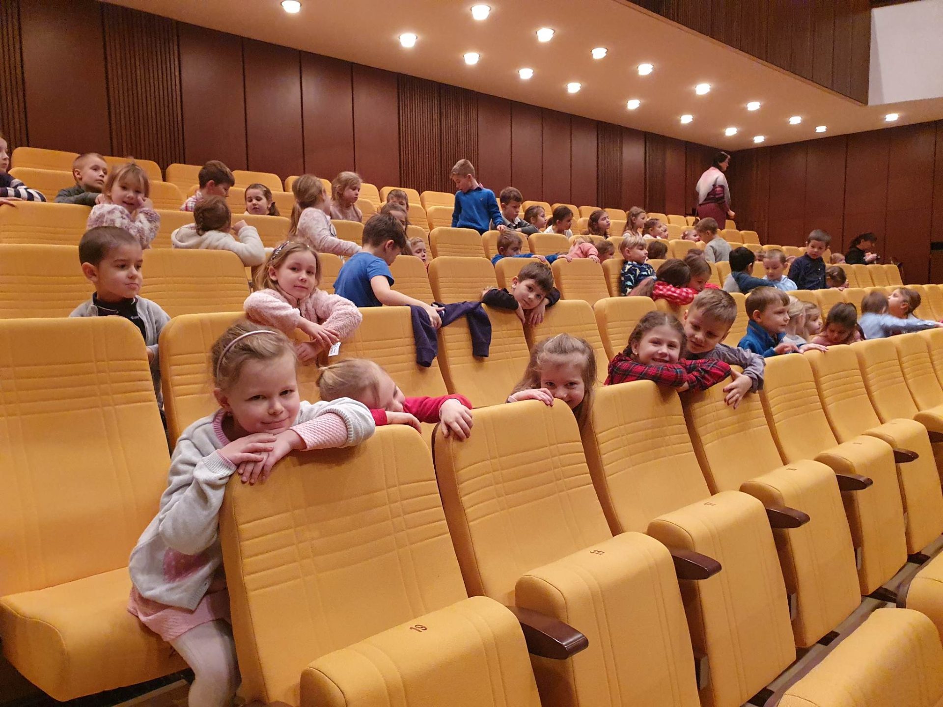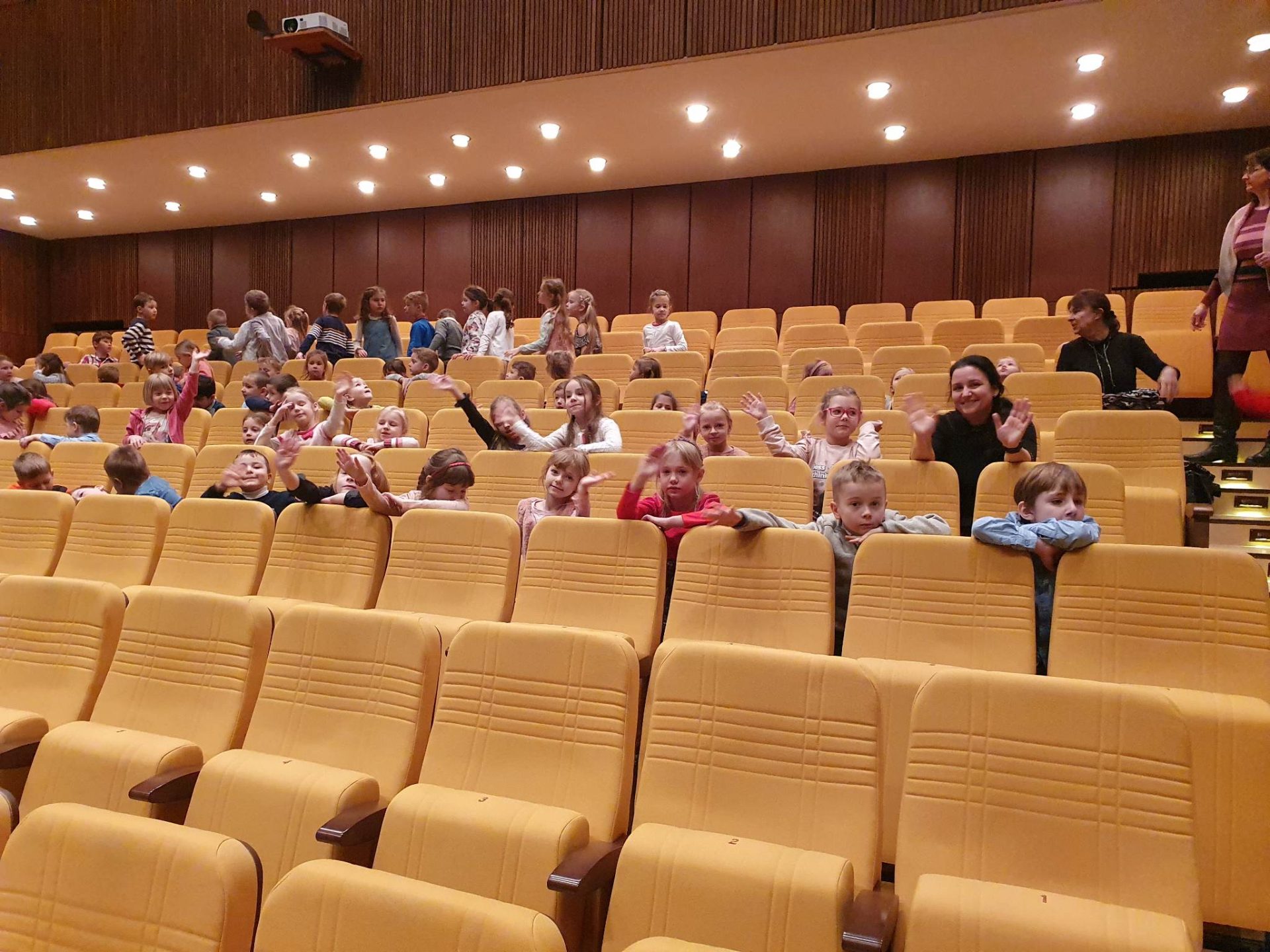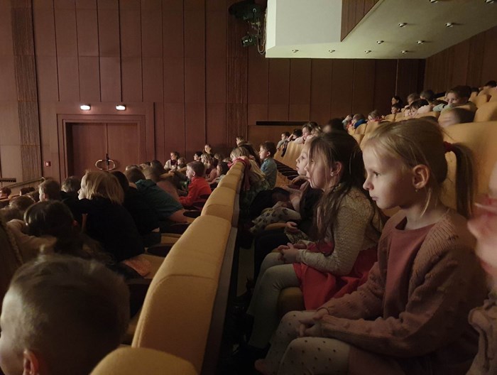Třídy Broučků, Hvězdiček a Soviček navštívily Beskydské divadlo, které hrálo představení "Utíkej, myško, utíkej!".