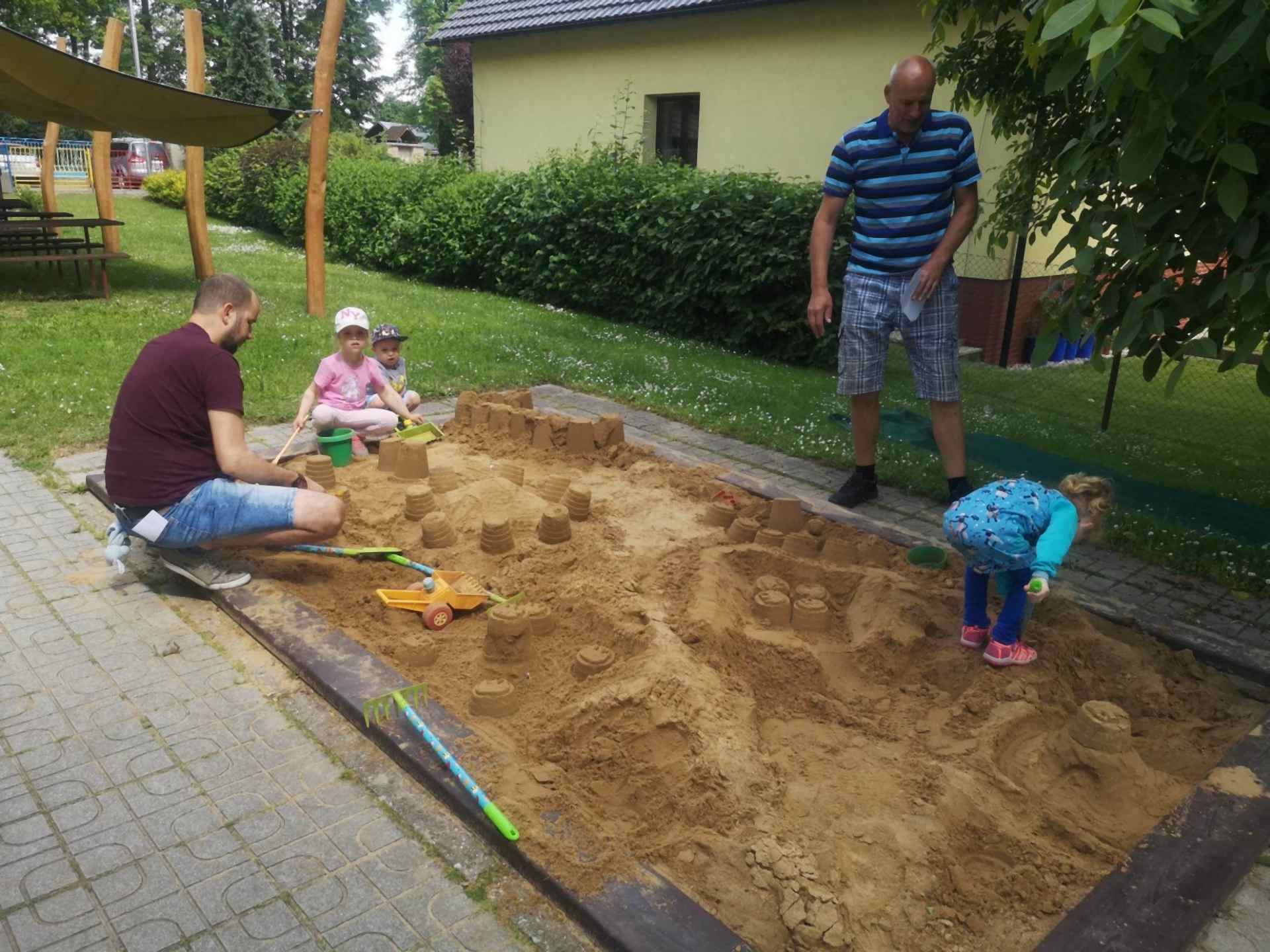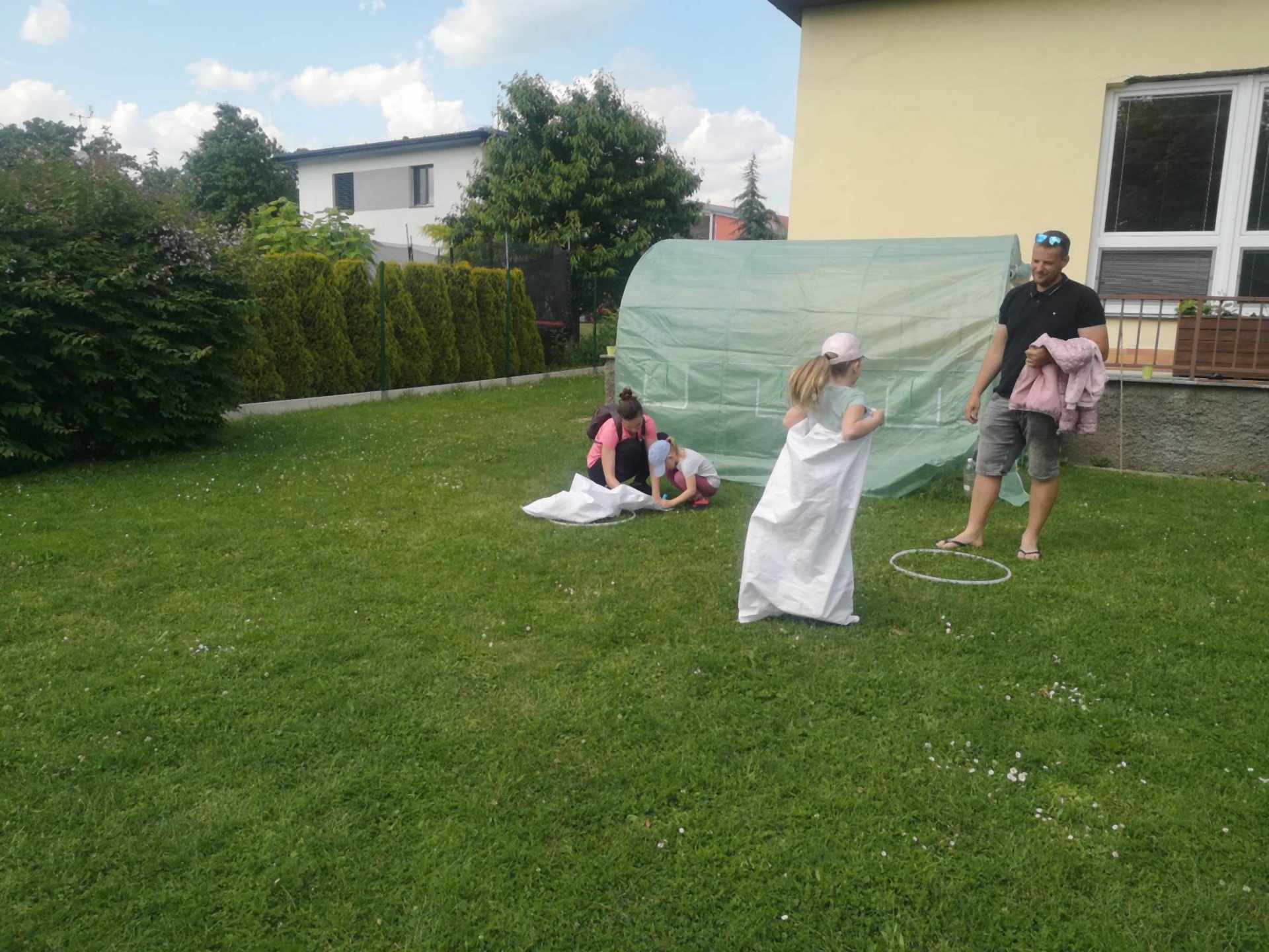 Společné odpoledne plné legrace si na stezce zahradou užili v úterý 13. června 2023 tatínci se svými dětmi ze tříd Kuřátek a Broučků. Tatínci a děti si společně prošli sedm stanovišť s úkoly, mezi nimiž například byly stavba hradů z písku, vyplňování pohádkového kvízu, skákání v pytlech nebo tvoření tatínka ze šroubků a matiček jako přívěšek na klíče a jiné. Za úspěšné dokonání stezky čekala na jejím konci na všechny slaná, sladká ale i hořká odměna v podobě občerstvení připraveného samotnými dětmi. Všem zúčastněným moc a moc děkujeme za příjemnou akci a těšíme se zase za rok.
