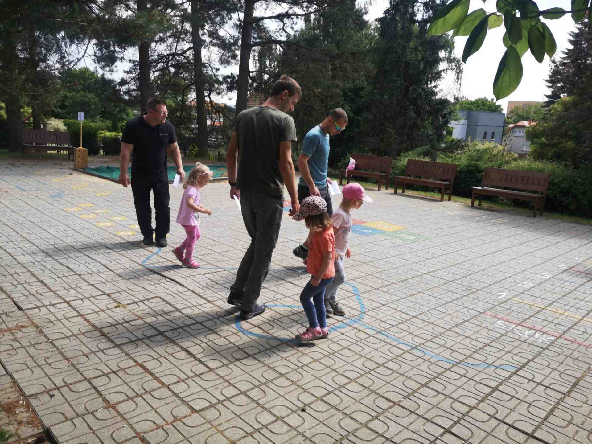 Společné odpoledne plné legrace si na stezce zahradou užili v úterý 13. června 2023 tatínci se svými dětmi ze tříd Kuřátek a Broučků.