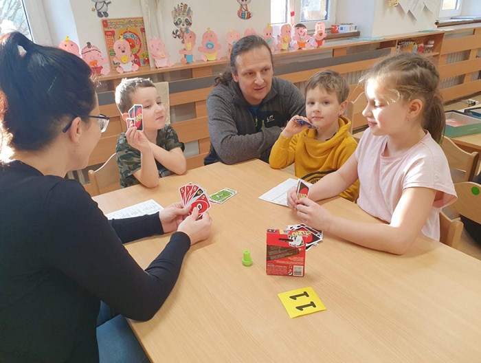 Děti ze třídy Soviček strávily odpoledne se svými rodiči nad deskovými hrami a stavebnicemi. Zahráli si tak společně starší i nové hry, které letos dostaly pod stromeček. Za splnění stanoviště s deskovou hrou získávaly děti razítka, které další den směnily za moudré sovičky, které sbírají v rámci třídního programu Kdo si hraje nezlobí.