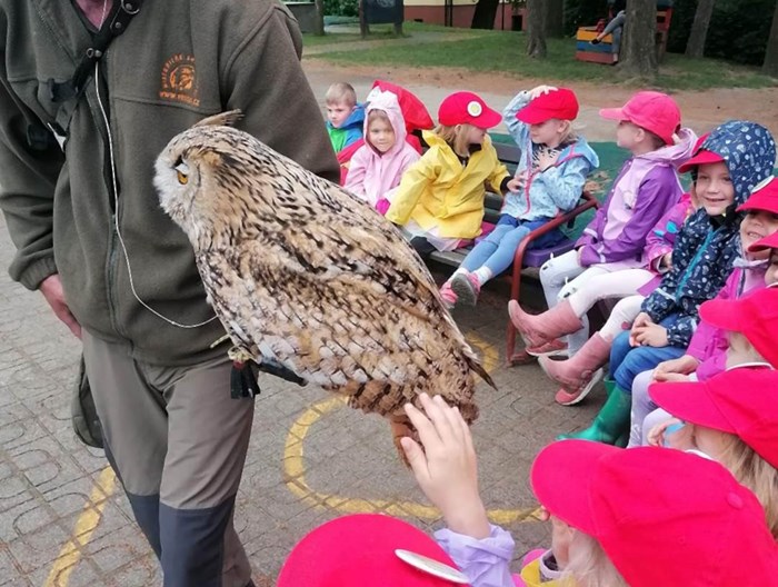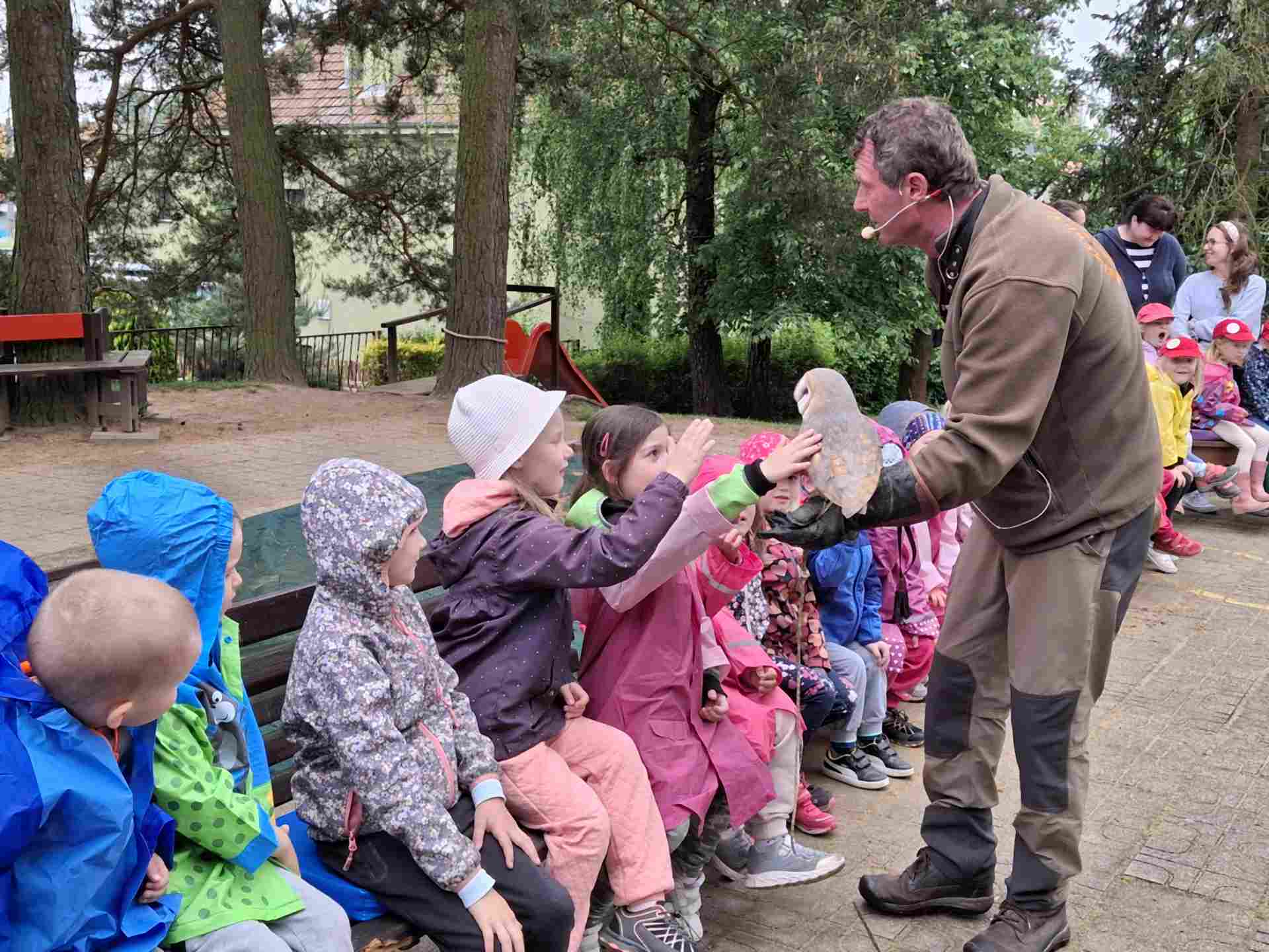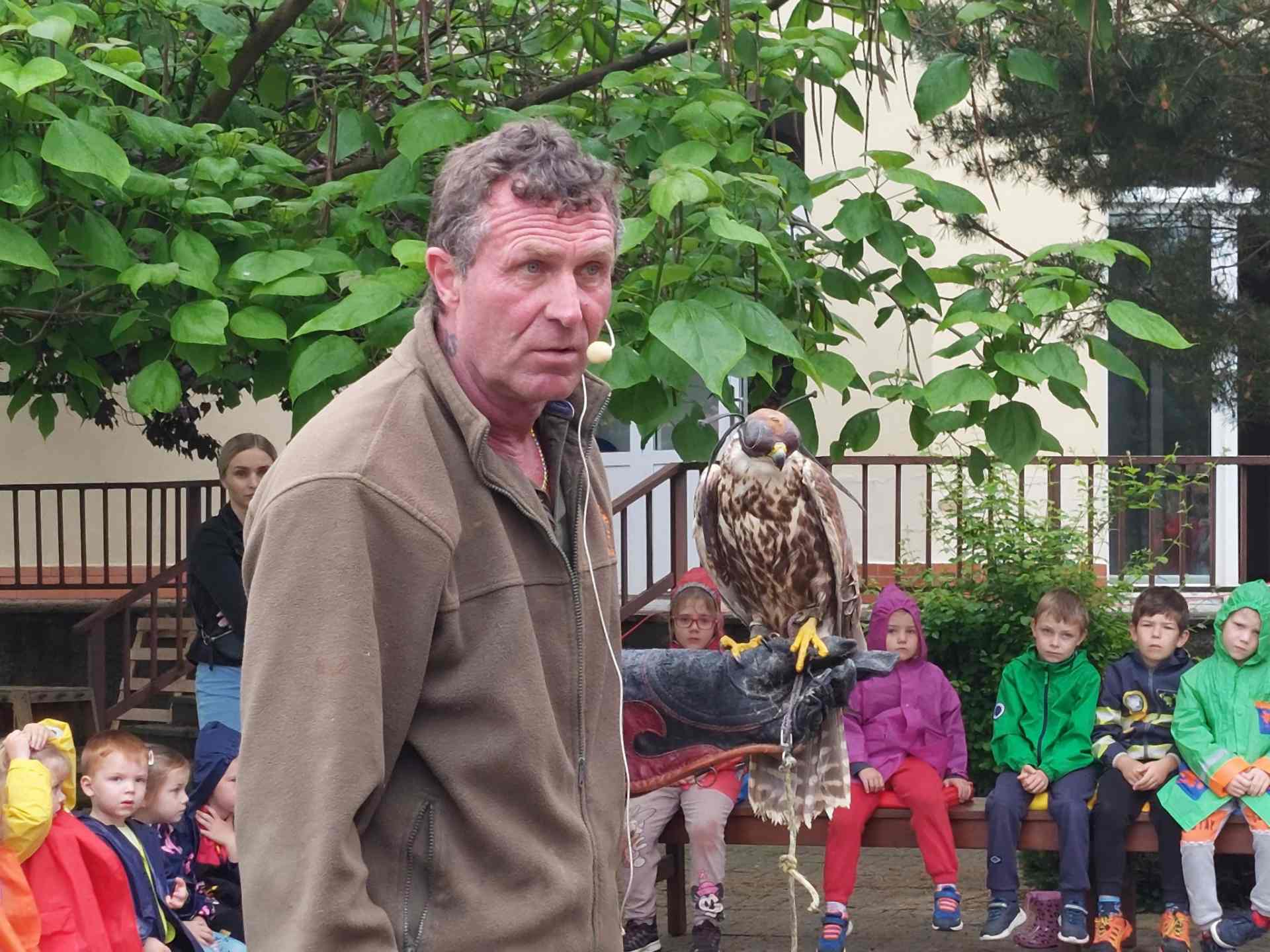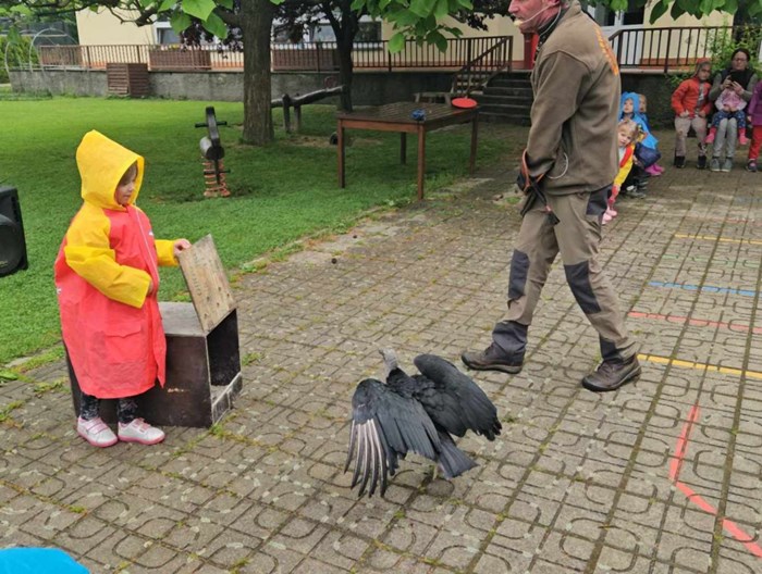 Děti ze školky shlédly přehlídku všech možných krásných okřídlenců a opeřenců. Viděly let sokola i supa. Dozvěděly se, že krkavci jsou velmi inteligentní, pohladily si sovu pálenou, pokochali se nejmenší i největší sovičkou na světě, obdivovali káně, které ulovilo kunu. Vystoupení i zážitky byly úžasné.