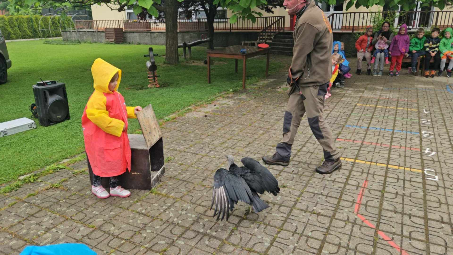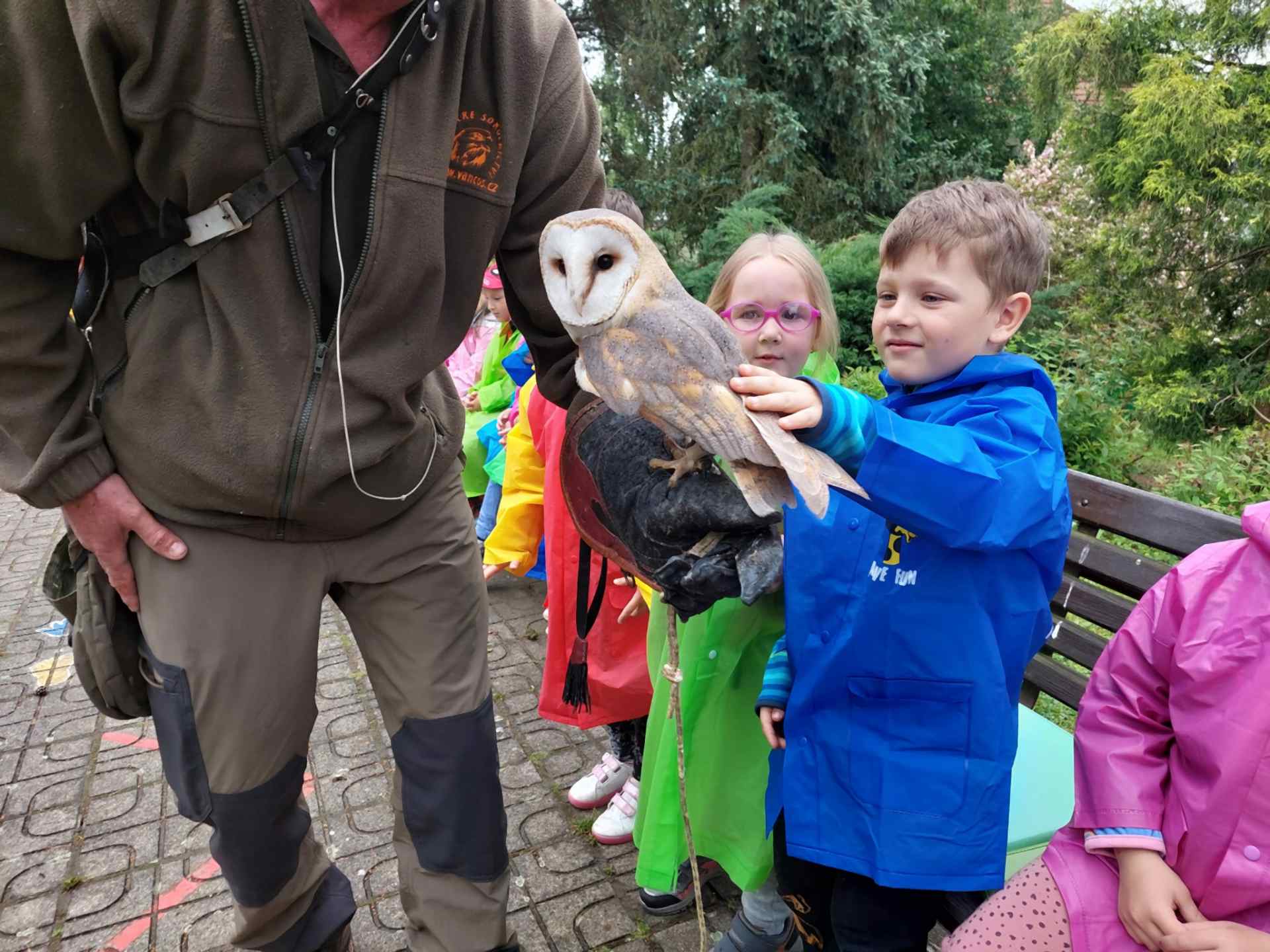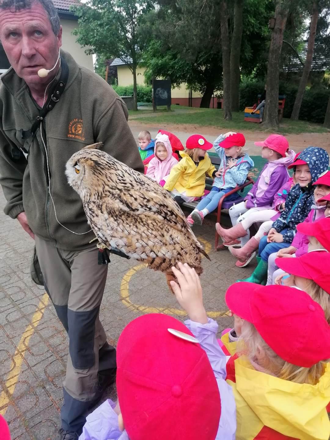 Děti ze školky shlédly přehlídku všech možných krásných okřídlenců a opeřenců. Viděly let sokola i supa. Dozvěděly se, že krkavci jsou velmi inteligentní, pohladily si sovu pálenou, pokochali se nejmenší i největší sovičkou na světě, obdivovali káně, které ulovilo kunu. Vystoupení i zážitky byly úžasné.