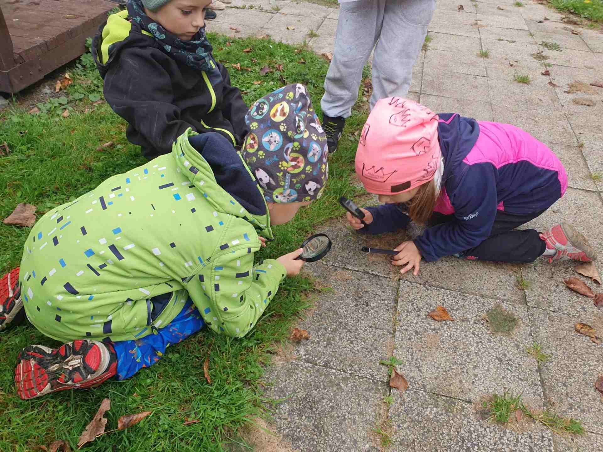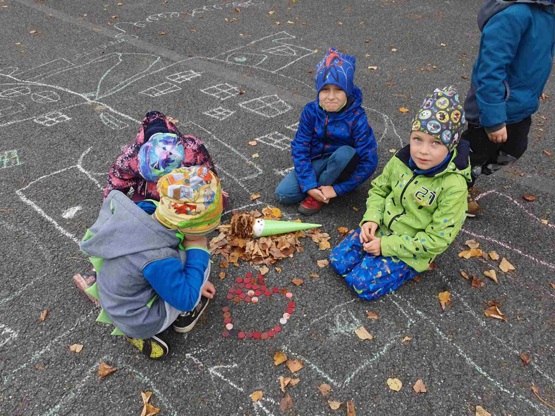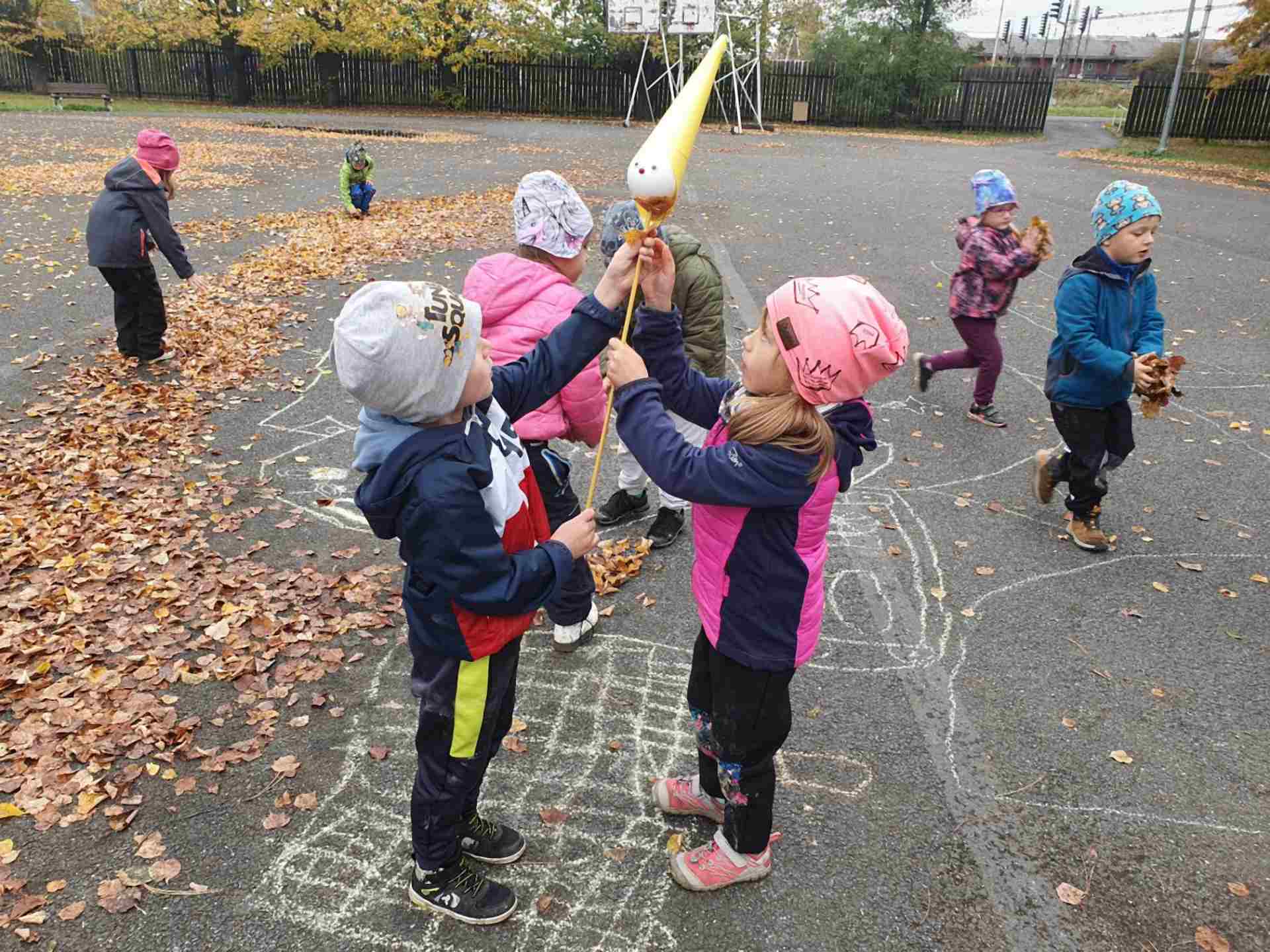 Každé malé dítě ví, že stromy jsou obývány skřítky. Na podzim skřítky Podzimníčky. Takové skřítky jsme se se třídou soviček vydali hledat na Sokolák, kde je plno listnatých stromů, které se právě barví do nejrůznějších barev. Několik skřítků Podzimníčků nemělo ještě svůj domov a tak jim je děti pomohly vytvořit. Skřítkové jim slíbili, že když se jim podaří tento týden splnit úkoly v podzimním deníčku, dostanou odměnou vzácné diamanty. Děti se tedy hned pustily do prvního úkolu a začaly bádat a hledat typické znaky podzimní přírody. Objevily broučky, mravence, zkoumaly listy, stromy, trávu a všelicos dalšího, co našly. Naše čtyři Podzimníčky jsme si vzali s sebou do školky, kde jsme jim poskytli útočiště než přijde zima.