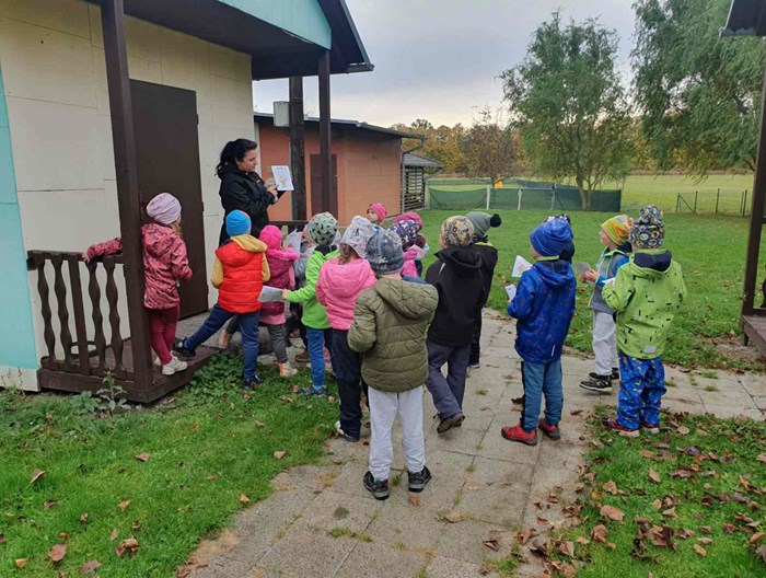 Každé malé dítě ví, že stromy jsou obývány skřítky. Na podzim skřítky Podzimníčky. Takové skřítky jsme se se třídou soviček vydali hledat na Sokolák, kde je plno listnatých stromů, které se právě barví do nejrůznějších barev. Několik skřítků Podzimníčků nemělo ještě svůj domov a tak jim je děti pomohly vytvořit. Skřítkové jim slíbili, že když se jim podaří tento týden splnit úkoly v podzimním deníčku, dostanou odměnou vzácné diamanty. Děti se tedy hned pustily do prvního úkolu a začaly bádat a hledat typické znaky podzimní přírody. Objevily broučky, mravence, zkoumaly listy, stromy, trávu a všelicos dalšího, co našly. Naše čtyři Podzimníčky jsme si vzali s sebou do školky, kde jsme jim poskytli útočiště než přijde zima.