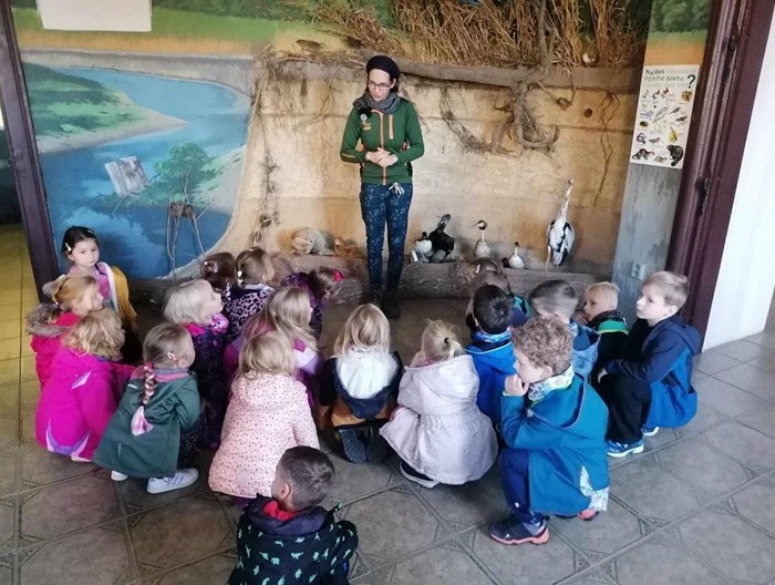 Během úvodní prezentace jsme se seznámili se stručnou historii záchranné stanice, s vlastní činnosti stanice, s riziky, která hrozí zvířatům z lidské činnosti a s aktivní ochranou vybraných ohrožených druhů. Děti si měly možnost prohlédnout vycpaná lesní zvířata a ptáky.