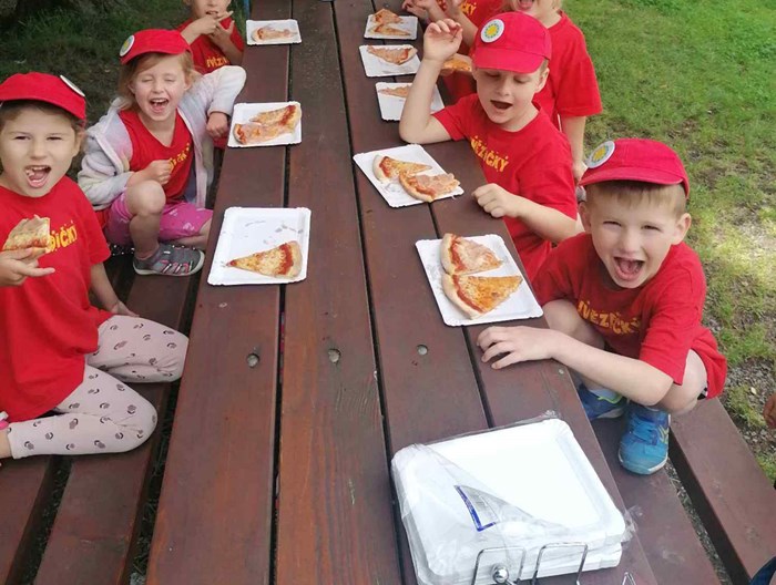 Ve fulneckém muzeu J. A. Komenského jsme absolvovali edukační program s názvem Míčem, koulí, kuželkami. Nejdříve proběhla krátká exkurze a seznámení s Honzíkem Komenským v kapli, pak si děti vyzkoušely v parku hry s chůdami, cvrnkání kuliček, kuželky a petang. Poté jsme vystoupali k fulneckému zámku a krásnou procházkou jsme došli až do cukrárny, kde na děti čekala sladká tečka. Výlez jsme zakončili na hřišti, kde na nás čekal vyjímečný oběd – pizza. Děkujeme SRPŠ za finanční příspěvek a Martínkovým rodičům za výborný oběd.