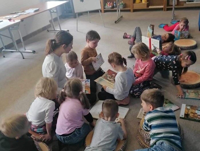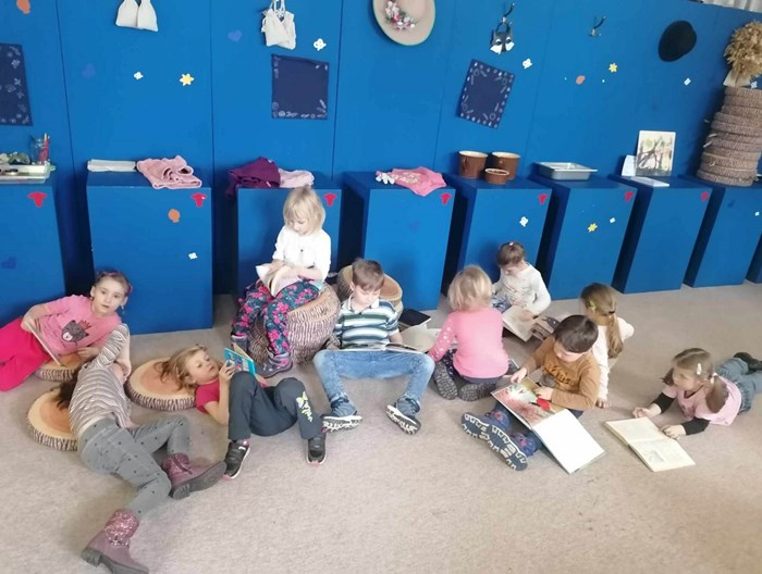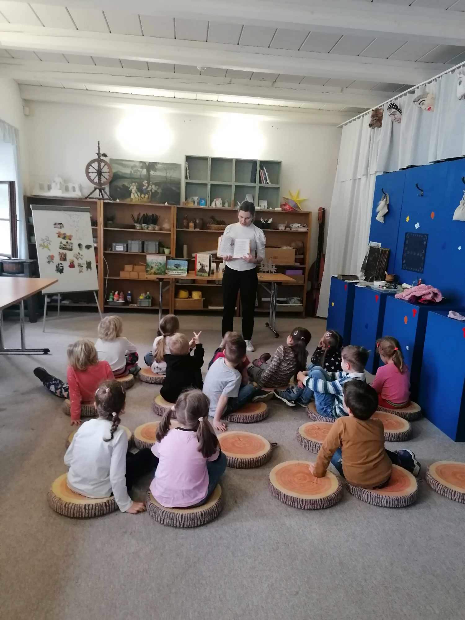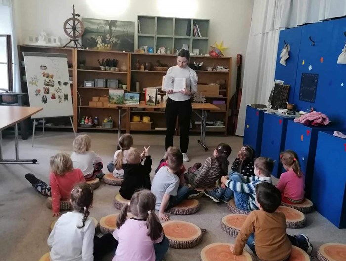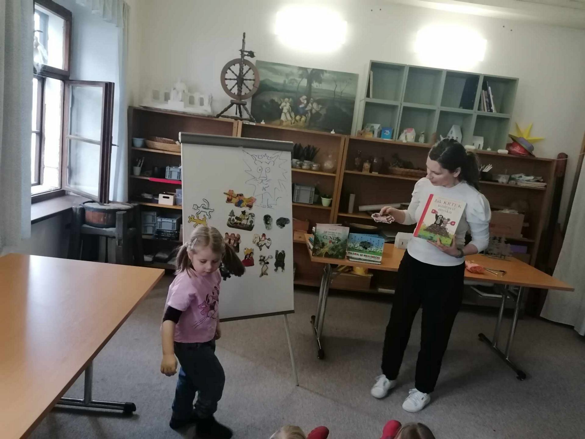 Tak takto se jmenoval edukační program v Žerotínském zámku, kterého se zúčastnily děti z oddělení Hvězdiček. Děti se dověděly, jak vypadaly knížky v dávných dobách, na co lidé kdysi psali. Zahrály si divadlo s loutkou a vytvořily si jednoduchým tiskem stránky do knížečky s různými motivy. Mladší děti poznávaly hrdiny z knížek a zjistily, jak vzniká příběh.