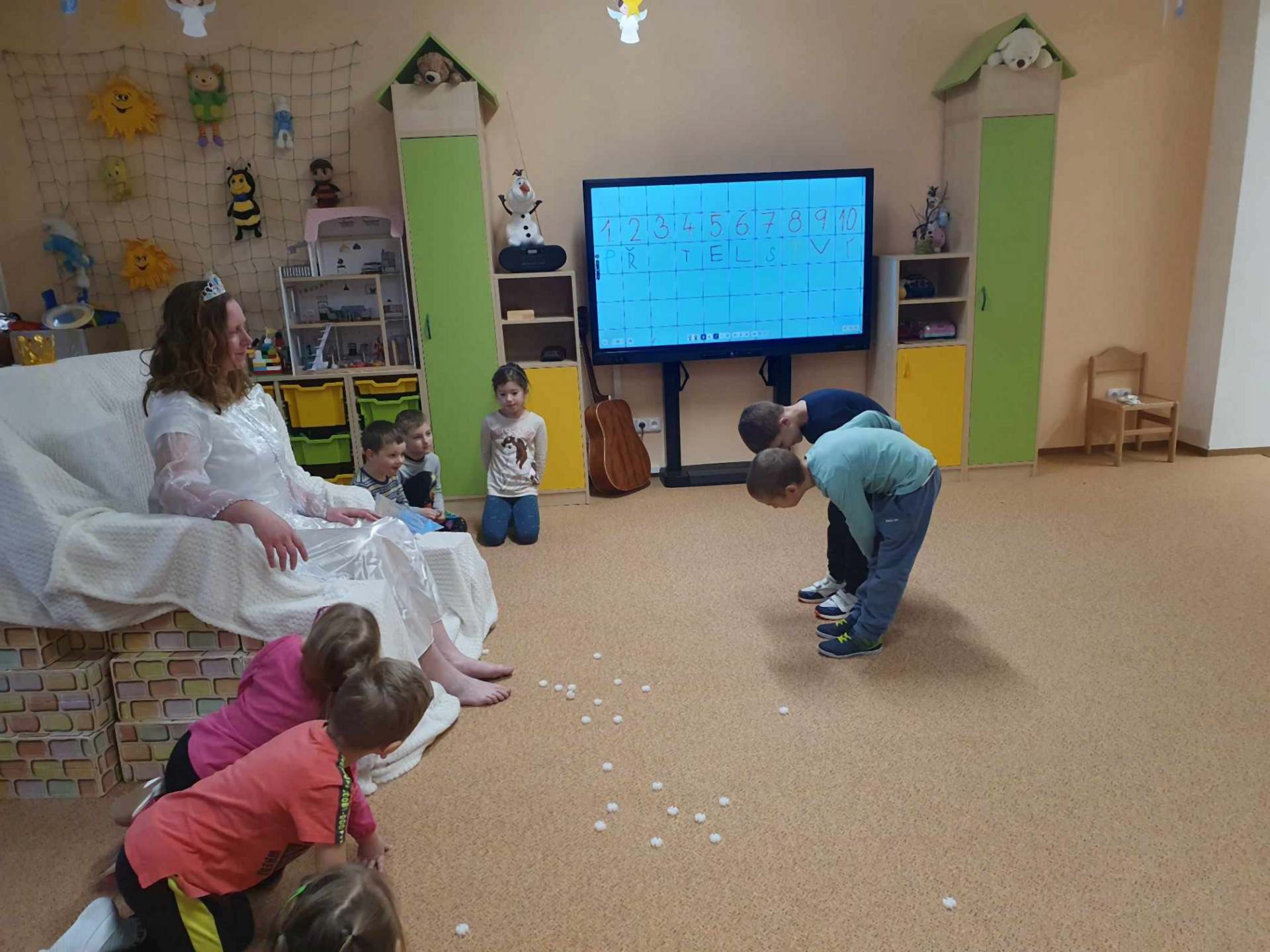 Celý minulý týden se nesl ve znamení pohádky o Sněhové královně. Pohádka vypráví o čaroději, který stvořil kouzelné zrcadlo, které má moc pokřivit obraz toho, kdo se do něj dívá. Nezobrazuje to dobré a krásné v lidech a věcech, ale znázorňuje ošklivost. Když se ale čert toto zrcadlo pokoušel přenést do nebe, neudržel ho, spadlo na zem, prasklo a miliardy střípků se rozlétly po celé zemi. Tyto střípky se dostaly do lidských očí a srdcí, a poté jejich oči viděly v lidech a věcech pouze ošklivost. Dva střípky spadly také do Kajova oka a srdce. Kaj byl unesen Sněhovou královnou a nakonec zachráněn malou Gerdou. Děti provázel tento příběh. S každou objevenou pohádkou získaly střep kouzelného zrcadla. Příběh vyvrcholil setkáním se Sněhovou královnou a nalezením posledního dílku. Děti objevily, že přemoci zlo a led v srdci, lze pouze silou lásky a přátelství.