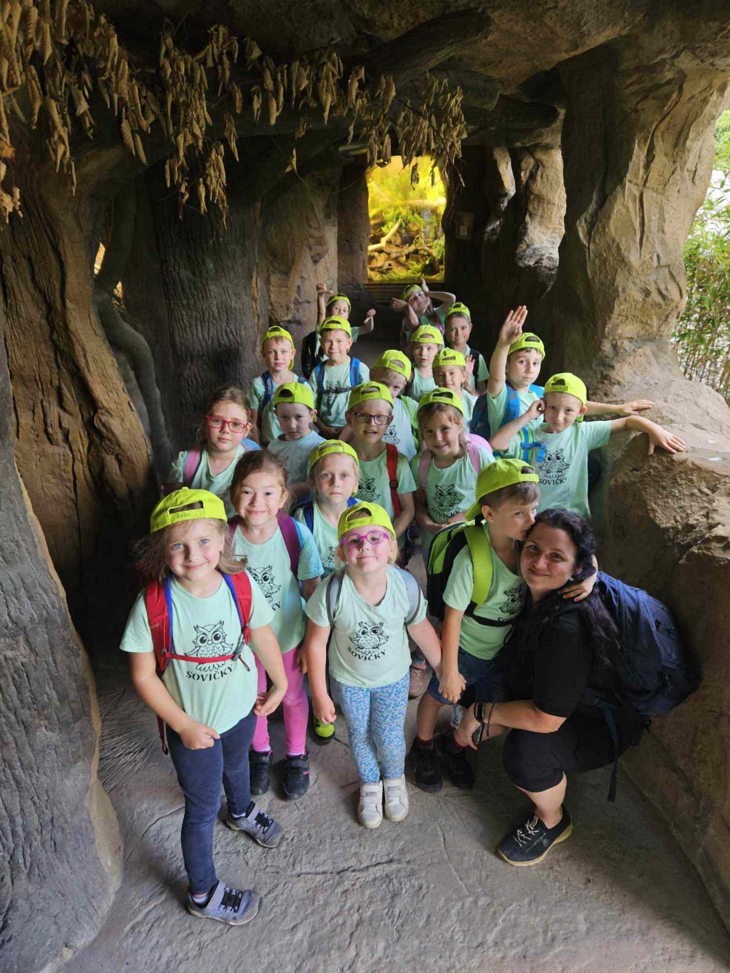 Malí dobrodruzi ze třídy Soviček a Broučků se vydali na výlet do zoologické zahrady v Ostravě. S batůžky na zádech celí netrpěliví vystoupili z autobusu a těšili se na všechna zvířátka. Dozvěděli se spoustu novinek na edukačních programech "Svět zvířat" a "Mláďata". Nakoukli do různých pavilonů s exotickými zvířaty, viděli šelmy, opičky, ptáčky, plazy i ryby. Vyřádili se na prolézačkách, překážkách a velkém dřevěném hradu s tobogánem a nechyběla ani jízda vláčkem. Výlet si náležitě užili a při zpáteční cestě vyčerpáním usnuli. Jestli se právě podle toho nepozná skvělý výlet?