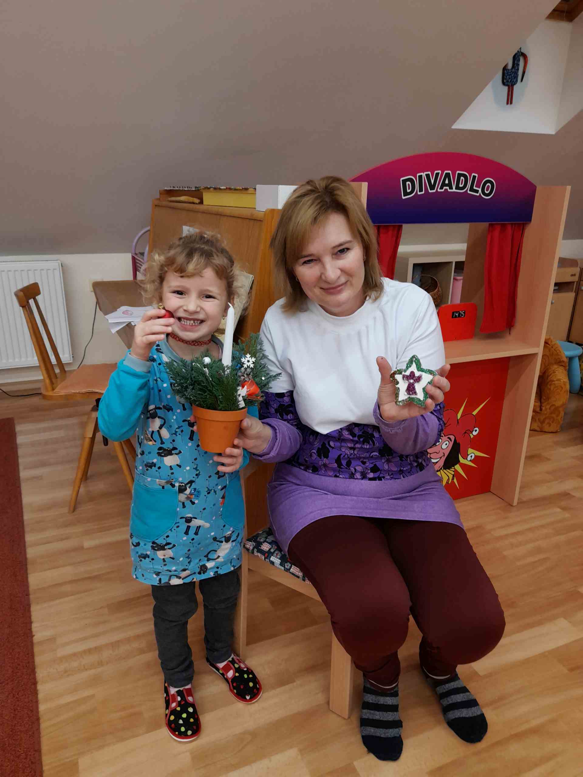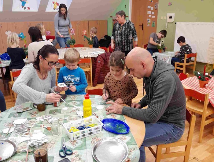 Ve třídě Broučků jsme uspořádali pro rodiče s dětmi vánoční tvoření v příjemné vánoční atmosféře. Děti s rodiči a prarodiči si vytvořily krásné vánoční svícny a dřevěné vánoční ozdoby. Příjemnou atmosféru při tvoření doplňovaly koledy, vánoční dětský punč a připravené občerstvení.