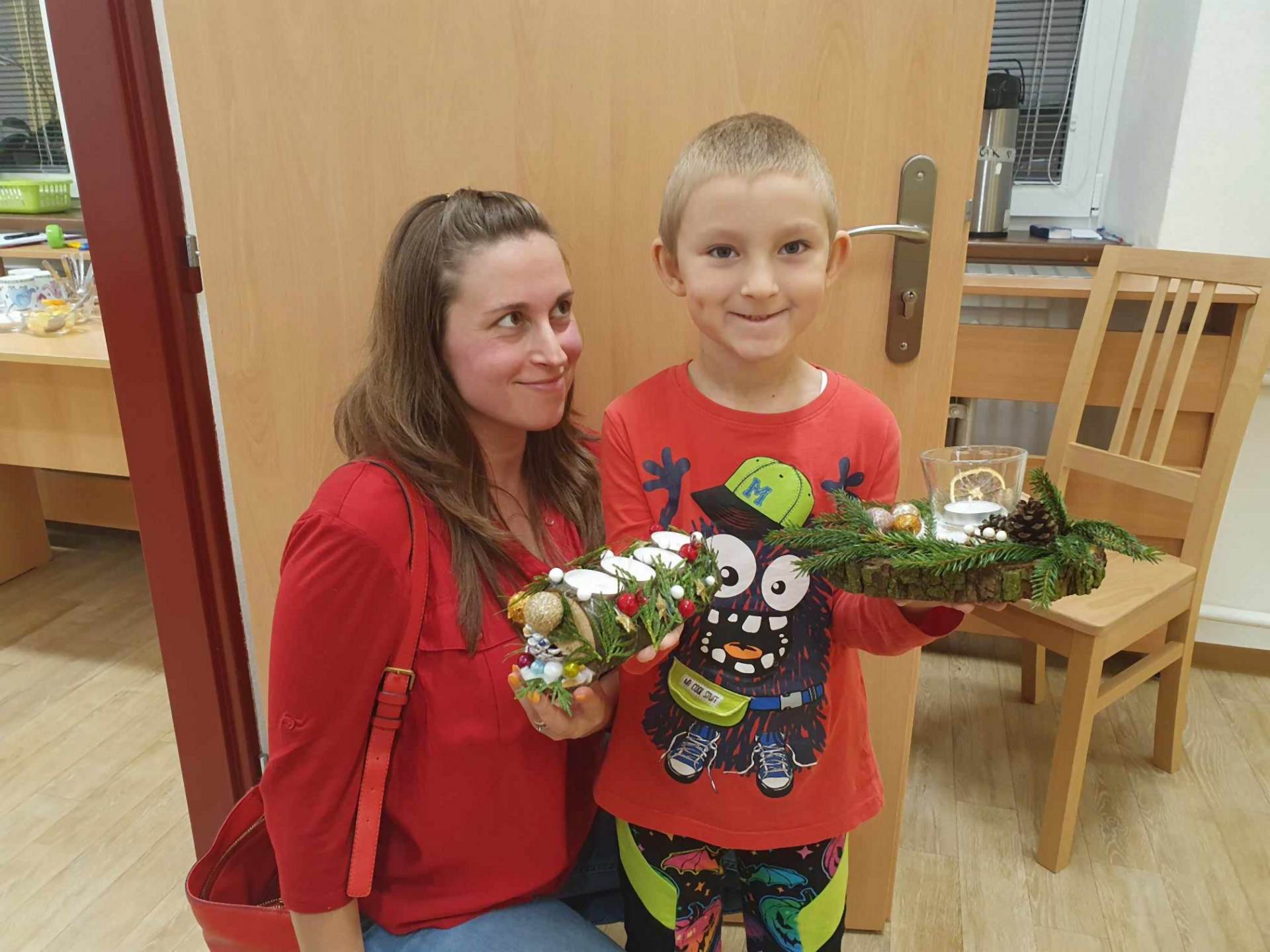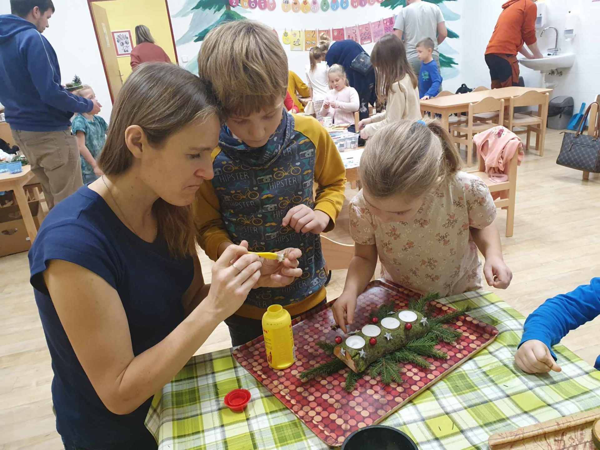 Vánoční atmosféru jsme si přišli užít na tvoření u Soviček. Školkou se linula vánoční vůně, zněly koledy a maminky, tatínci, babičky, i sourozenci se hemžili kolem stolečků s výtvarnými potřebami. Vytvářeli svícny, zimní skřítky, zasněžené šišky i malované tašky. Děkujeme SRPŠ za příspěvek na výtvarný materiál a rodičům za tvůrčího ducha a upečené dobroty.