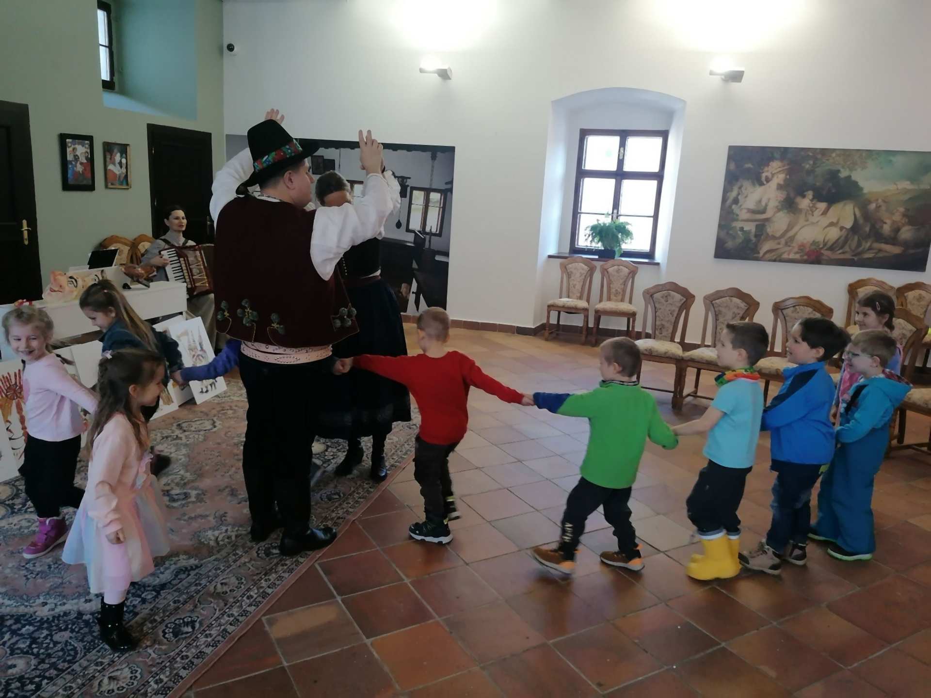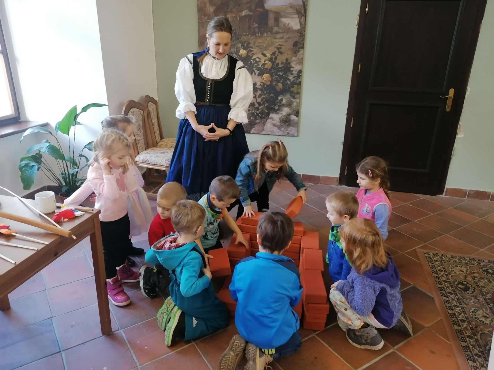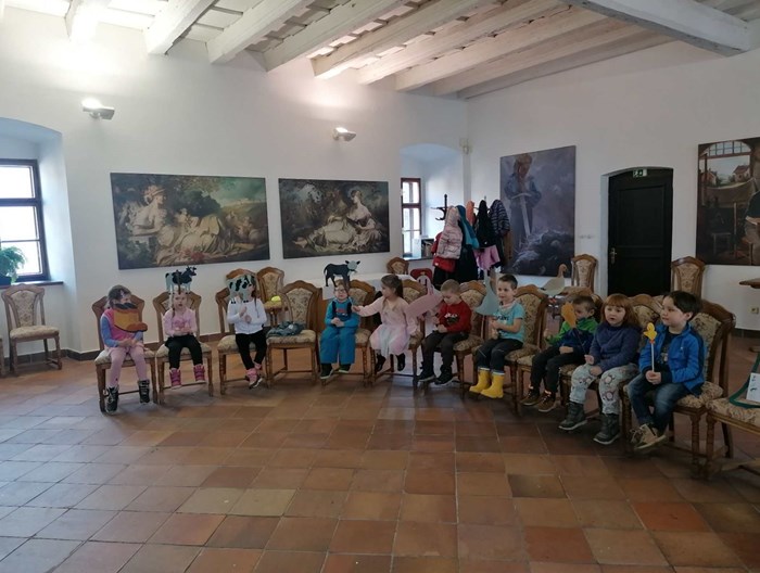 A tak jsme se vydali do Nového Jičína, kde nás v Žerotínském zámku čekal edukační program s názvem Rok s písničkou. Byla připravena hudebně - dramatická dílna pro děti, která měla za cíl naučit je intenzivněji prožívat a vnímat hudbu. Dětem bylo představeno, že naše předky doprovázela písnička při každé činnosti během celého roku. Společně s lektorkami děti spolu s písničkou prožili rok od jara do zimy.