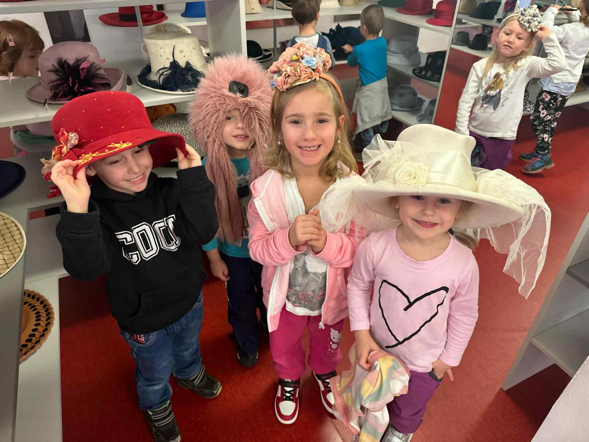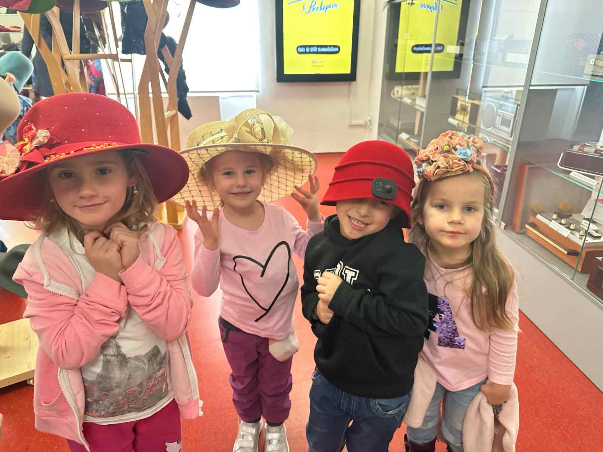 Děti z oddělení Hvězdiček z mateřské školy zažily výjimečný den plný kreativity a poznávání historie – navštívily Muzeum klobouků v Novém Jičíně. Prohlédly si a vyzkoušely různé typy klobouků: od elegantních klobouků z minulosti až po moderní klobouky, a dozvěděly se zajímavosti o jejich výrobě.