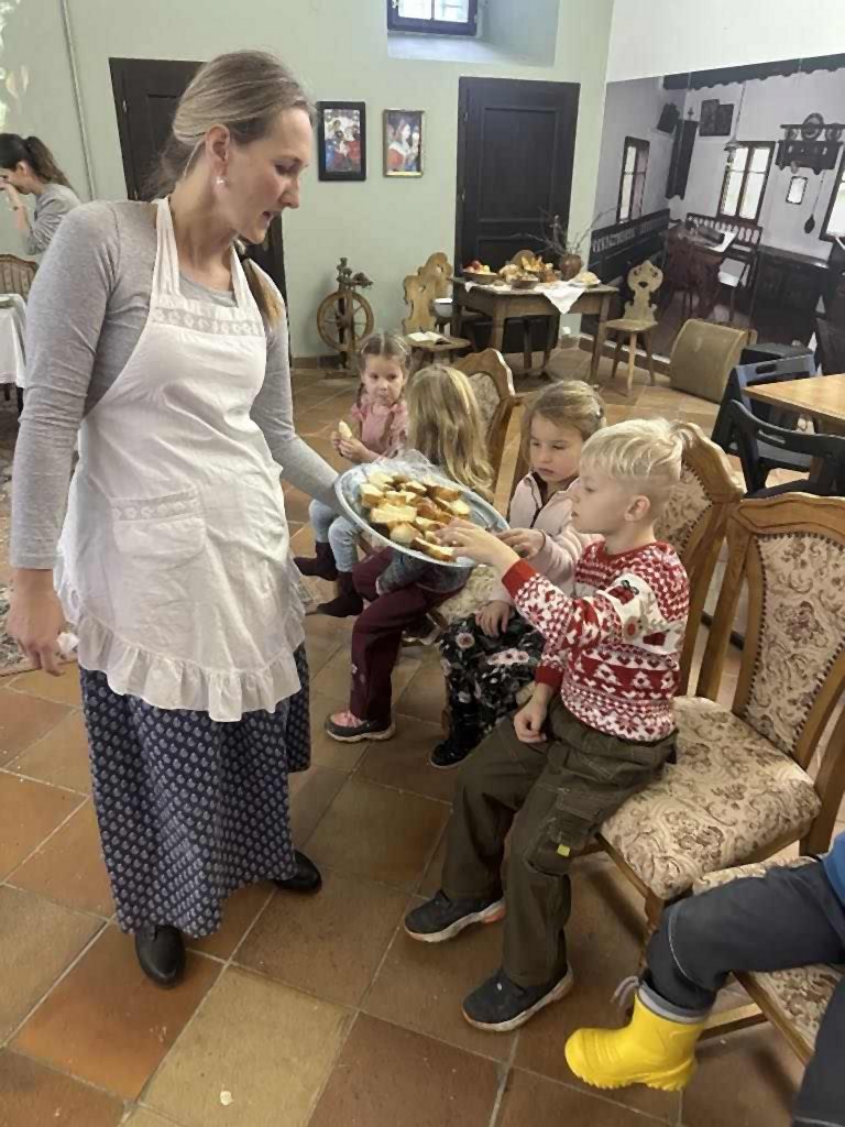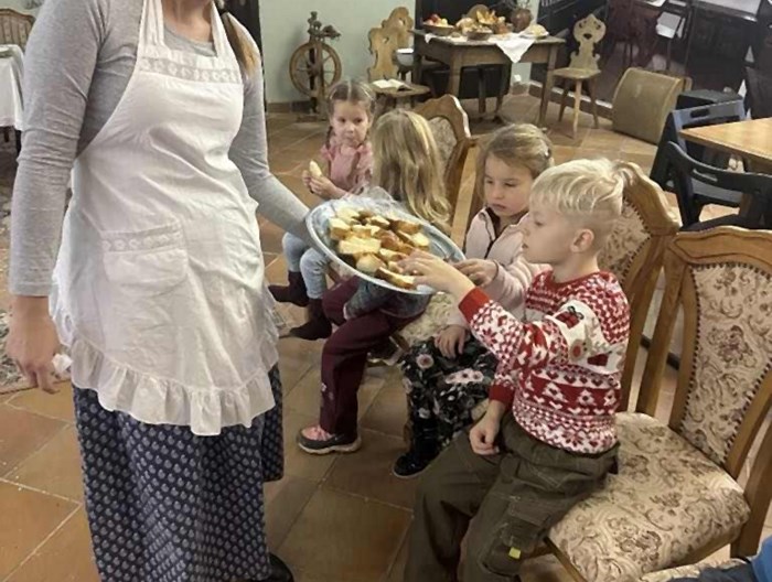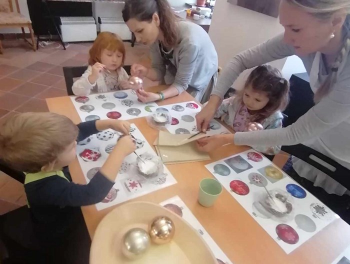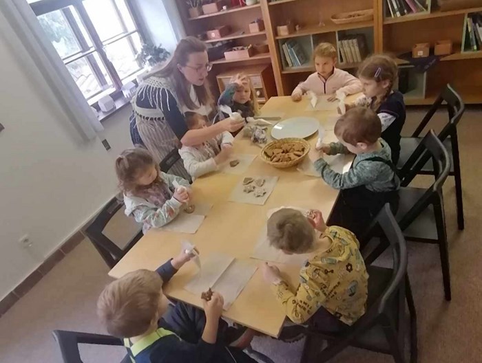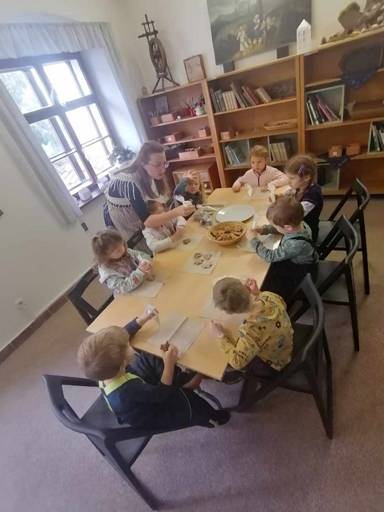 Tradiční program připomenul dětem atmosféru adventního času. Děti si vyslechly vyprávění o vánočních zvycích našich prarodičů. Povídání bylo doplněno ukázkami výroby tradičních předmětů týkajících se Vánoc - děti poznaly, jak se předlo na kolovratu, jak se vyřezávalo ze dřeva, jak se stloukalo máslo. V rámci programu si děti ozdobily baňky. Poslechli jsme si a zazpívali tradiční i méně známé koledy s doprovodem harmoniky. Ozdobili jsme si perníčky a slepili linecké cukroví.
