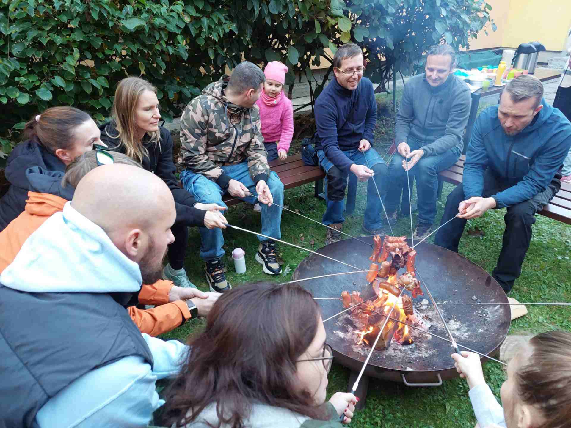 Rodiče byli aktivními účastníky celé akce, pomáhali dětem s úkoly a zároveň si užívali společné chvíle na čerstvém vzduchu. Všichni se skvěle bavili a užívali si podzimní odpoledne. Po splnění všech úkolů jsme si společně s rodiči a dětmi opekli špekáčky na ohni. U ohniště zazněla kytara a společně jsme si zazpívali oblíbené písničky, což krásně podtrhlo pohodovou a uvolněnou atmosféru celého dne.