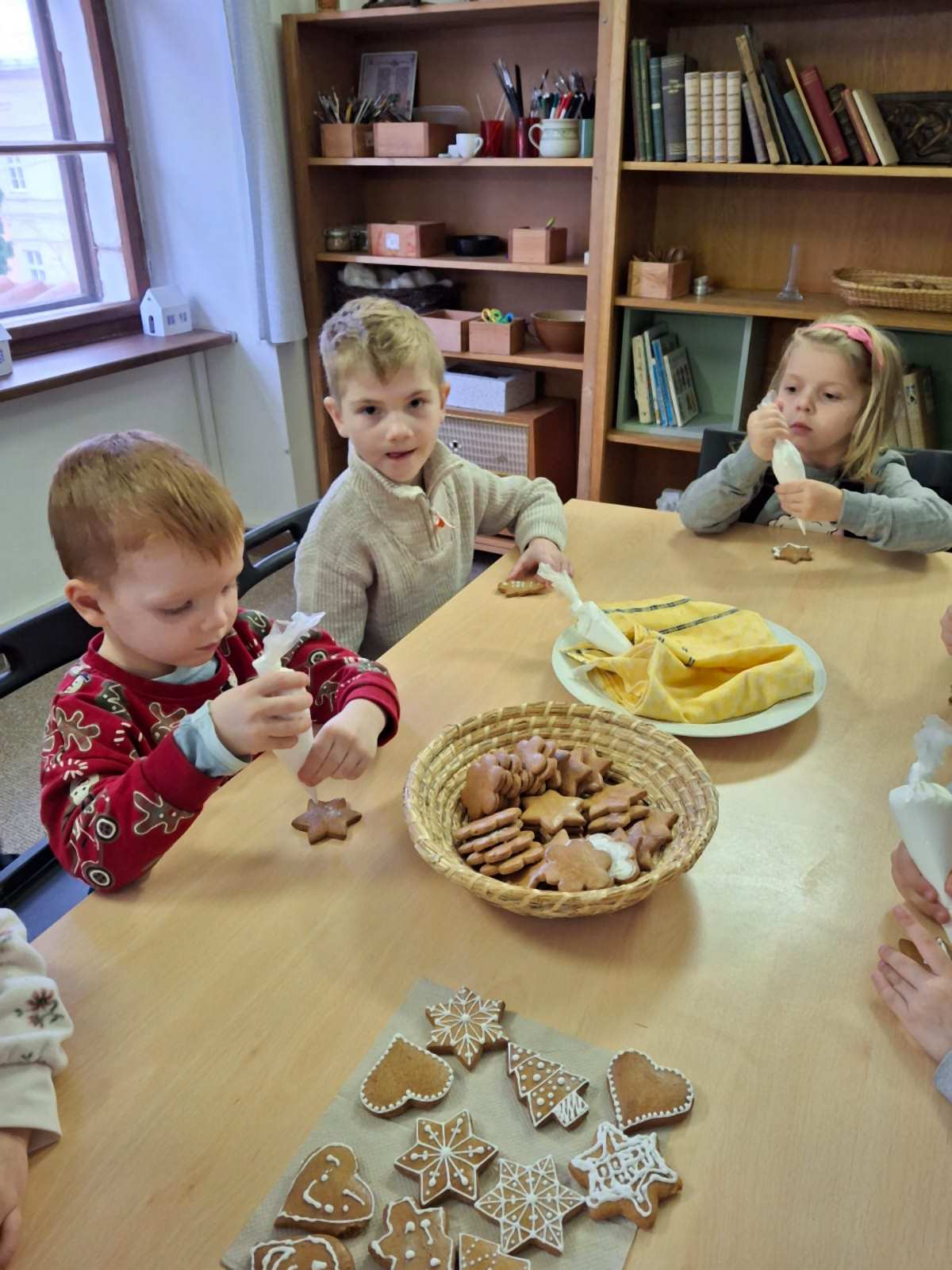Ve středu 11. 12. 2024 dopoledne jsme se společně s dětmi vydali autobusem do muzea v zámku v Novém Jičíně na vzdělávací program „ Vánoce ve městě“. Cestou do muzea jsme šli přes nazdobené náměstí, kde na nás dýchla ta pravá vánoční atmosféra a ta nás pak provázela celým dnem. Seznámili jsme se s vánoční historií, tradicemi a zvyky. Vyzkoušeli jsme si ozdobit křehkou baňku, stloukat máslo, ozdobit perníčky a slepovat linecké cukroví. Vše jsme také společně s čajem a vánočkou ochutnali. Všichni jsme si společně strávené předvánoční dopoledne užili.