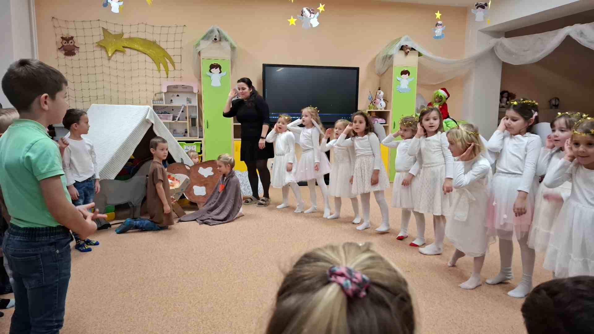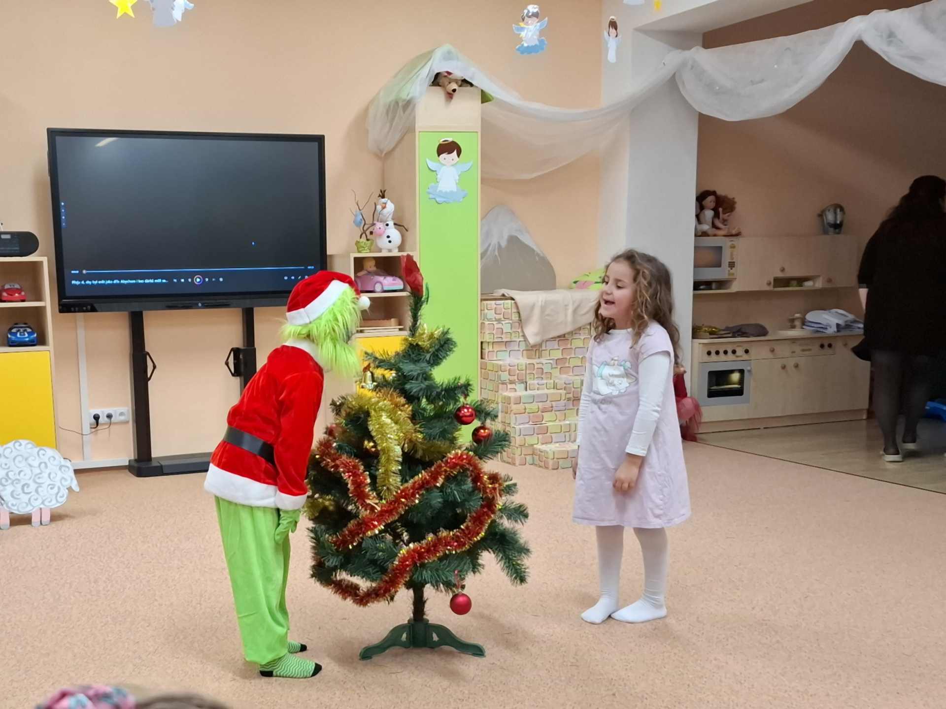 Děti ze třídy Soviček si pro své rodiče a blízké připravily vánoční příběh o Grinchovi. Děti provázely rodiče příběhem z městečka Kdovíkova, kde přistálo v ošatce zelené stvoření, které se setkávalo s pomluvami a nehezkým chováním lidí. Rodiče mohly pohlédnout do vánočních příprav a pomsty Grinche, který se rozhodl, že všem ukrade Vánoce. Naštěstí Grinchovo srdce bylo zasaženo Amorovým šípem, kdy potkal první Lásku, se kterou společně s dětmi z Kdovíkova objevili v jesličkách Ježíška, který jim dal tolik Lásky, že ji mohli rozdávat všem kolem sebe. Společným zpěvem sdíleli ten největší dar a to, že se máme mít rádi, nejen o Vánocích.