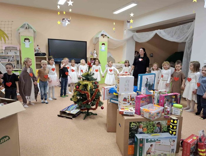 Jejich krásný příběh a snaha byla odměněna vánoční nadílkou, kdy si děti společně rozbalily dárečky a každý si domů odnesl sovičkové tričko na památku.