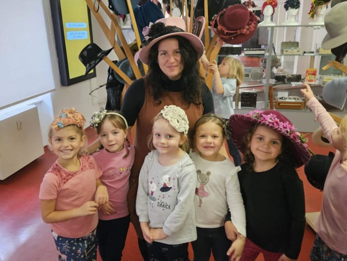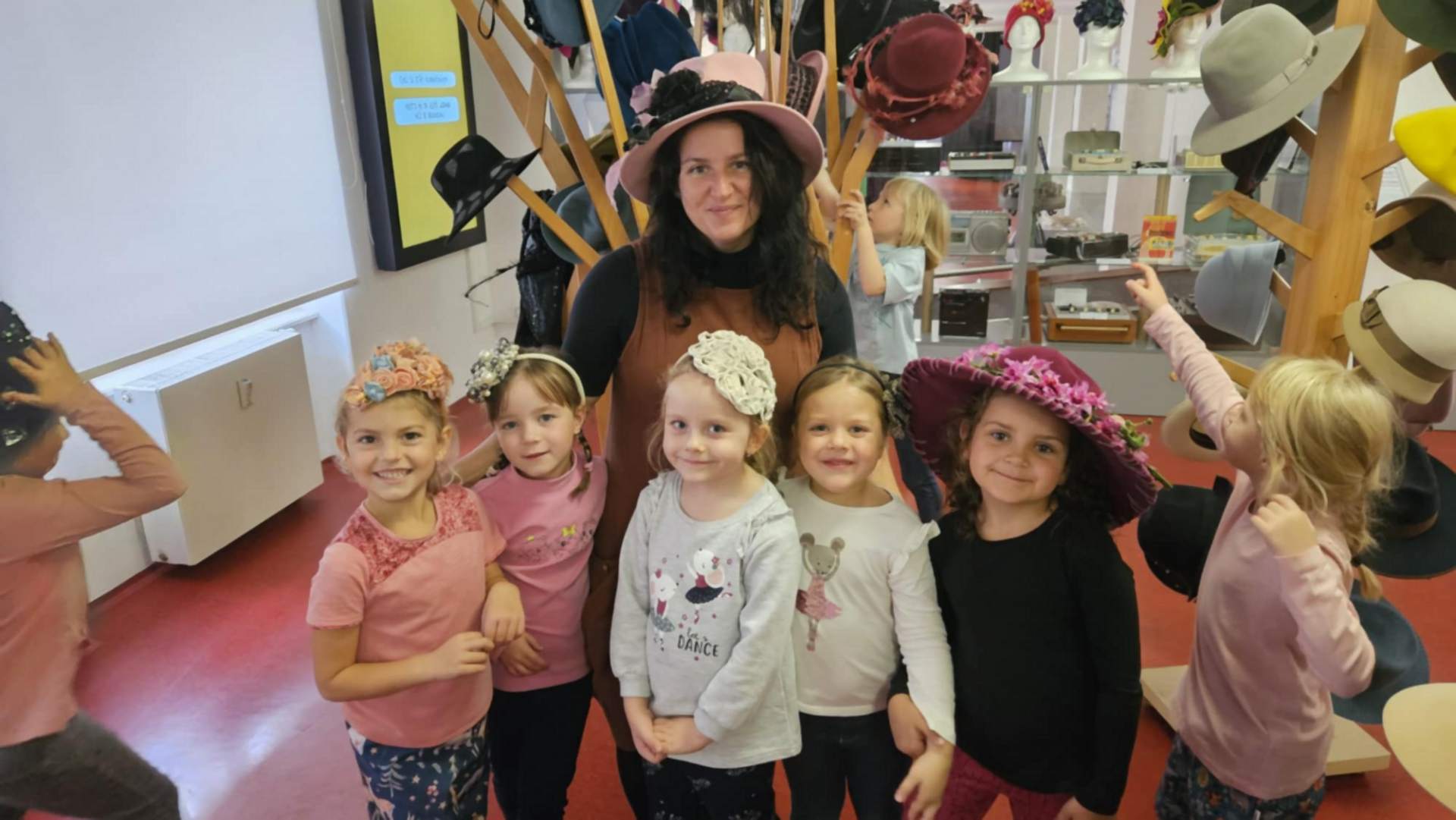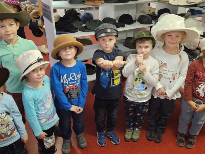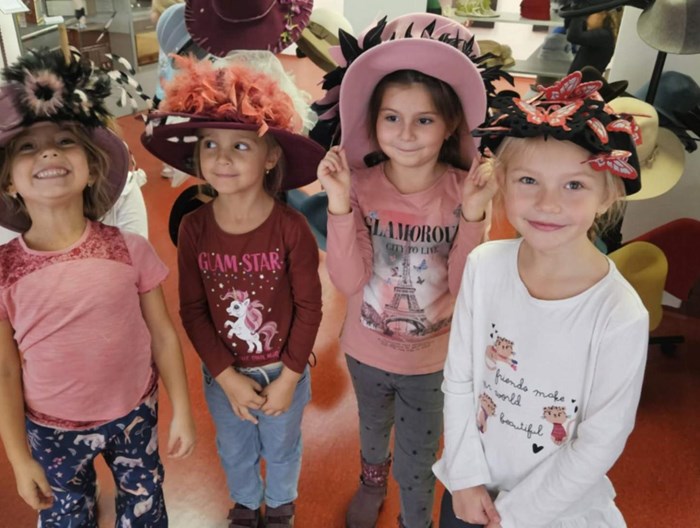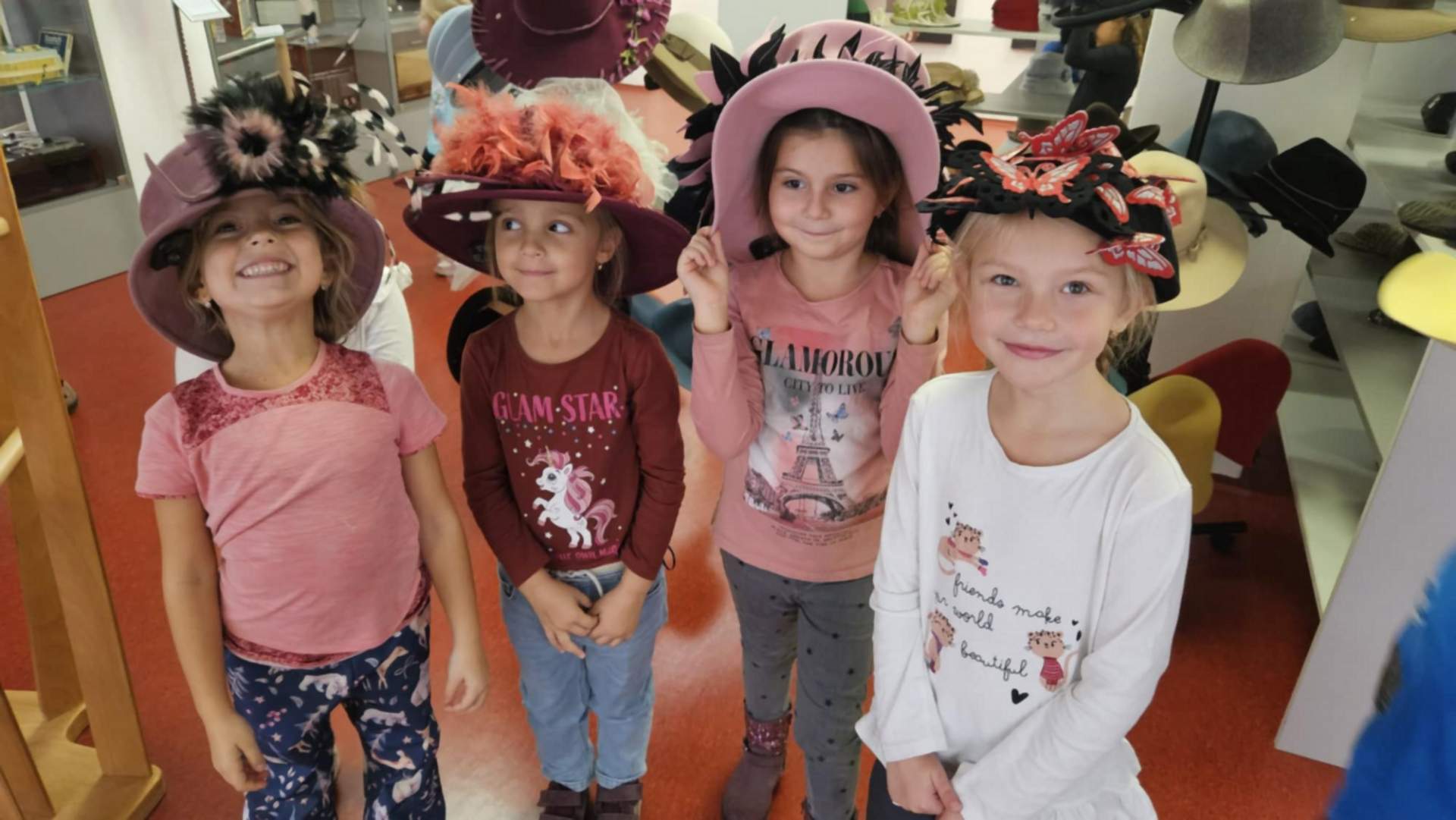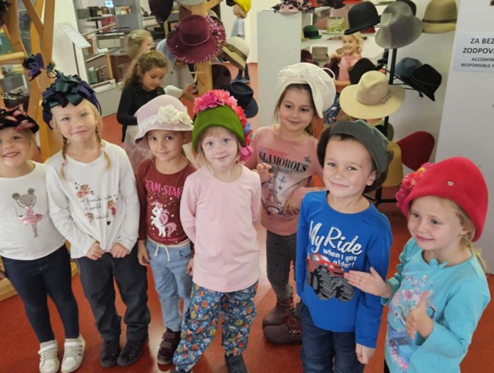 Po náročném dopoledni si děti odpočinuly při svačině a vyřádily se v herničce plné kostek. Na závěr si mohly vyzkoušet nejrůznější klobouky z místního muzea klobouků Tonak.