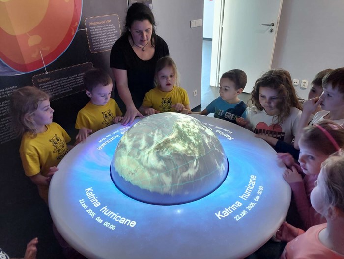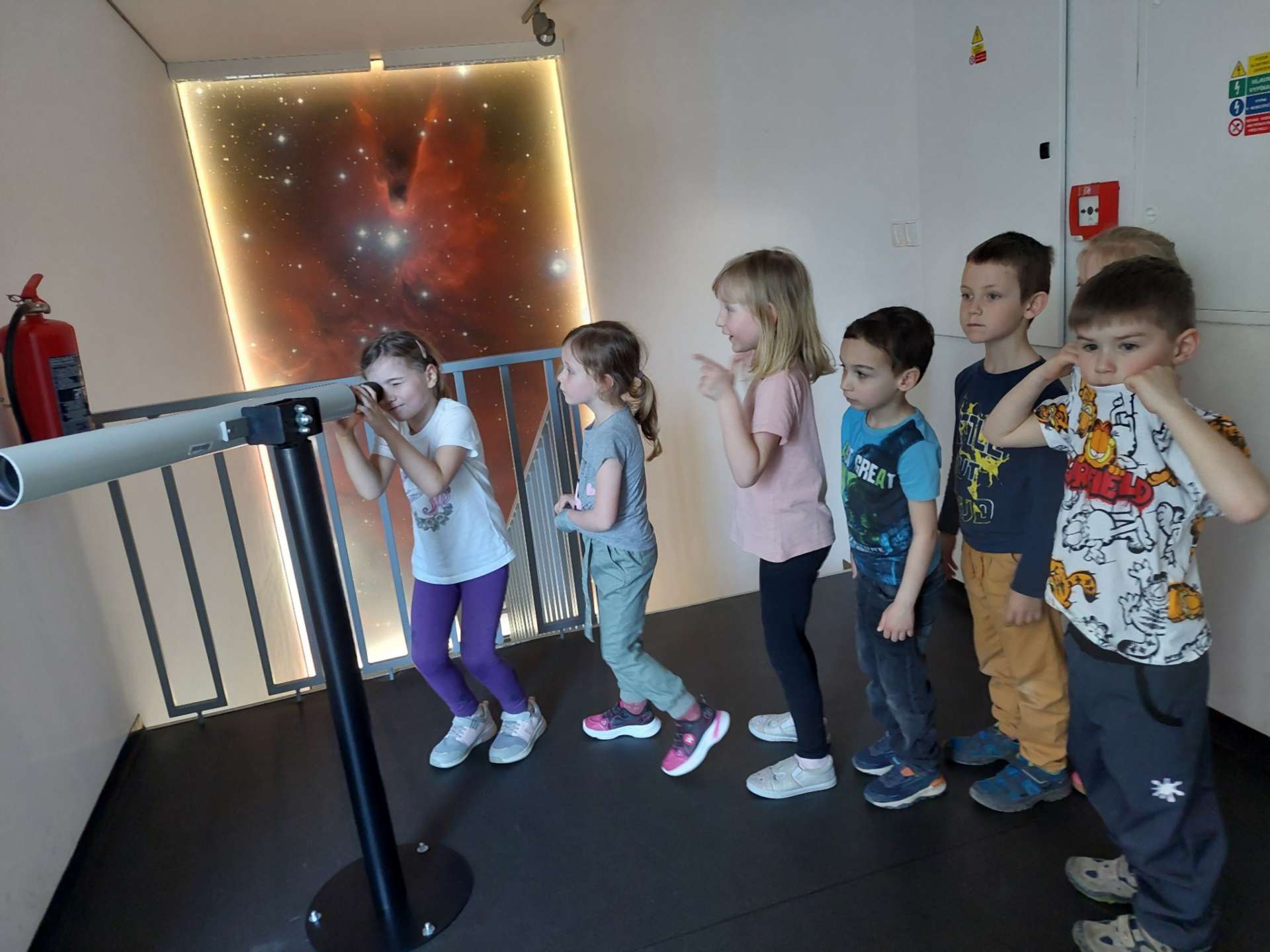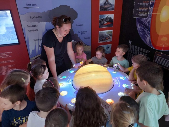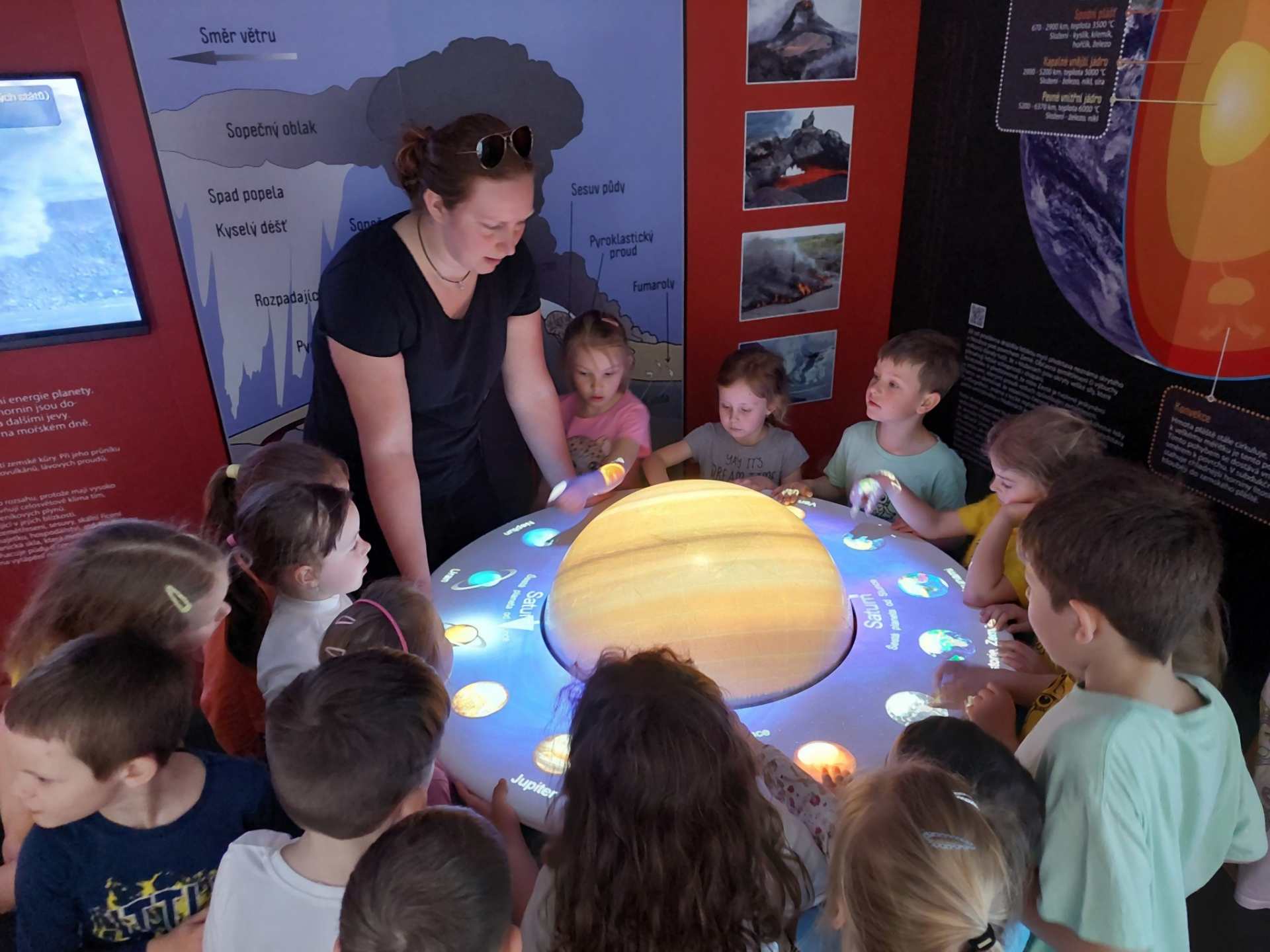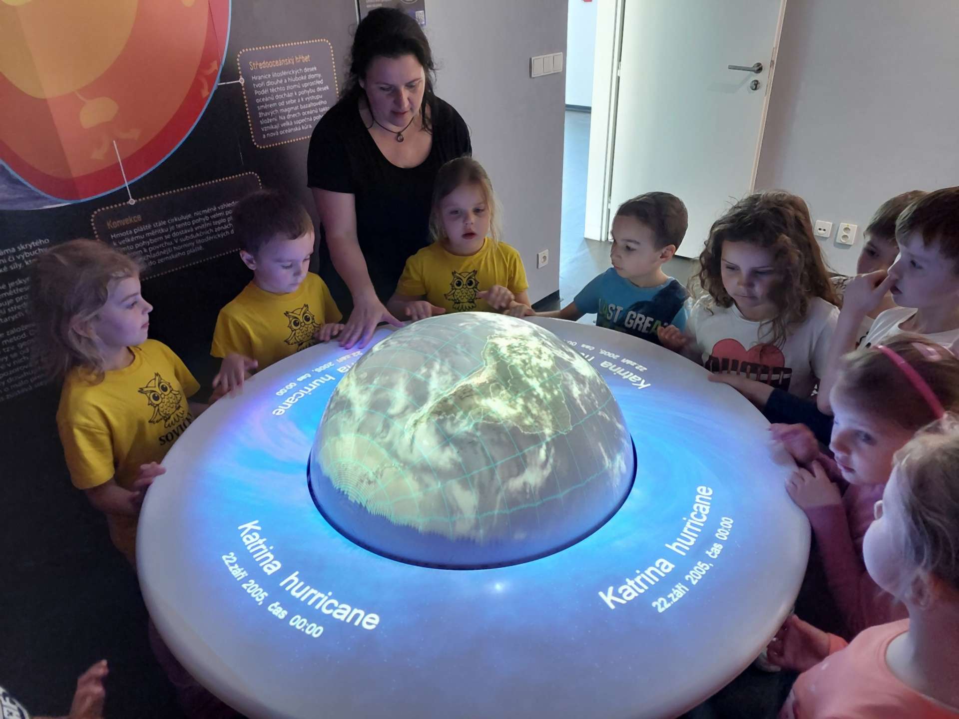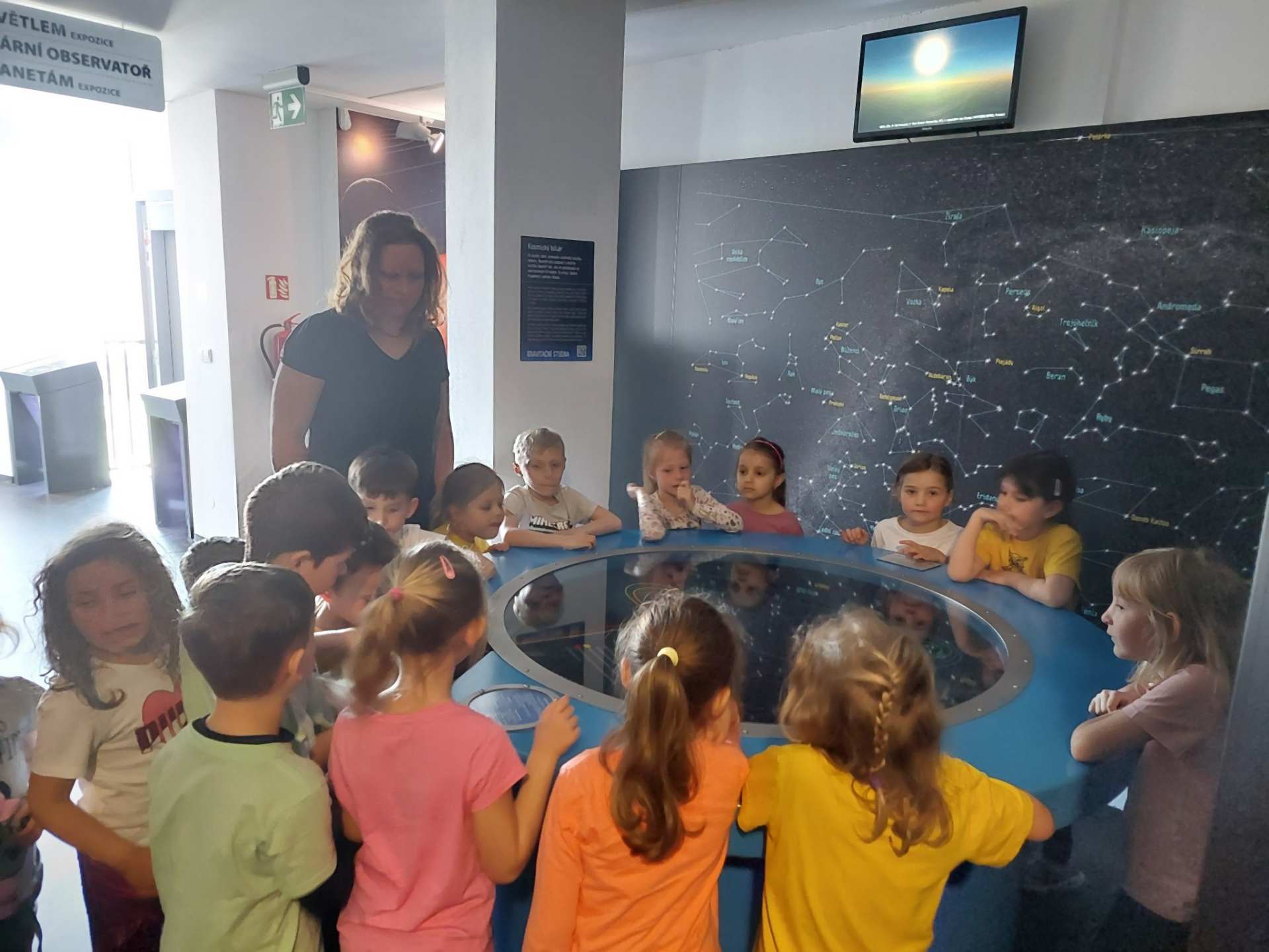Dále děti prozkoumaly interaktivní expozice, které jim přiblížily nejen děje ve vesmíru, ale také na Zemi a pod jejím povrchem. Zábavnou formou si vyzkoušely, jak fungují fyzikální a přírodní zákony – sledovaly tvořící se vír, prožily zemětřesení, pozorovaly okolí planetária dalekohledem a prohlédly si modely raket, družic a satelitů.