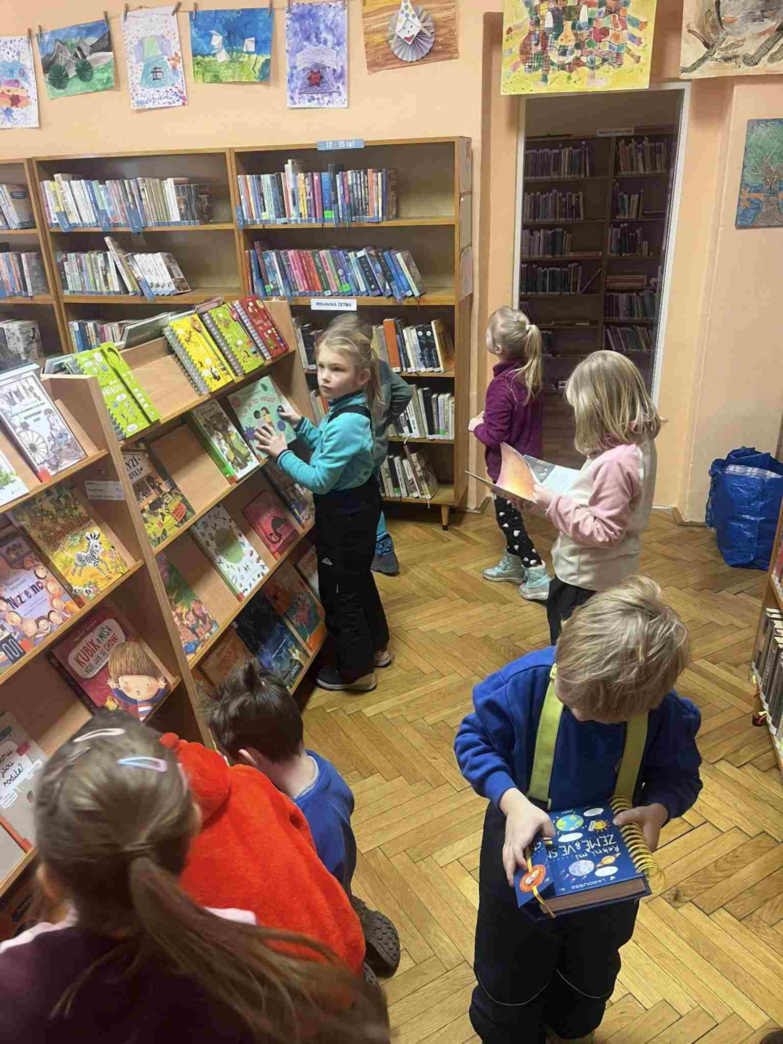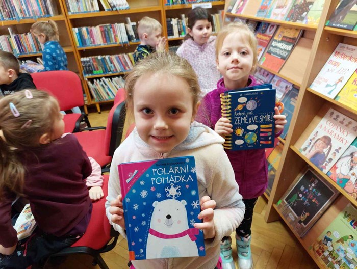 Děti ze třídy Soviček se vydaly na exkurzi do Suchdolské knihovny, kde na ně čekalo dopoledne plné objevování a poznávání světa knih. Již při vstupu do knihovny děti ohromila letecká puma zdejšího muzea. Hlavním cílem naší návštěvy bylo prozkoumat knihy s vesmírnou tématikou. Děti se s nadšením pustily do hledání příběhů o hvězdách, planetách, raketách a dalších tajemstvích nekonečného vesmíru. Společně jsme si pak přečetli zajímavosti o Měsíci a padajících hvězdách. Dozvěděli jsme se, o přistání lidí na Měsíci a sběru hornin z jeho povrchu a také, co jsou to meteory a proč někdy můžeme na obloze spatřit jejich zářící dráhu. Děti byly fascinované nejen samotnými knihami, ale také prostředím knihovny. S nadšením si prohlížely barevné ilustrace, listovaly stránkami plnými příběhů a naslouchaly poutavým vyprávěním. Návštěva knihovny byla pro děti krásným zážitkem a mnohé z nich už se těší, až se sem vrátí se svými rodiči a půjčí si knížku, která je nejvíce zaujala.