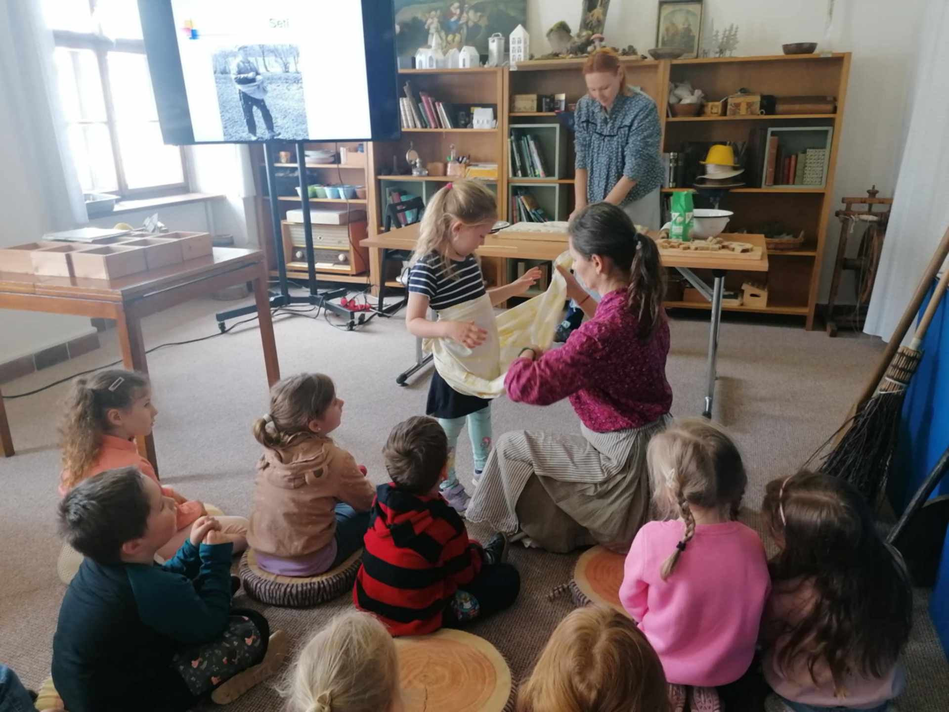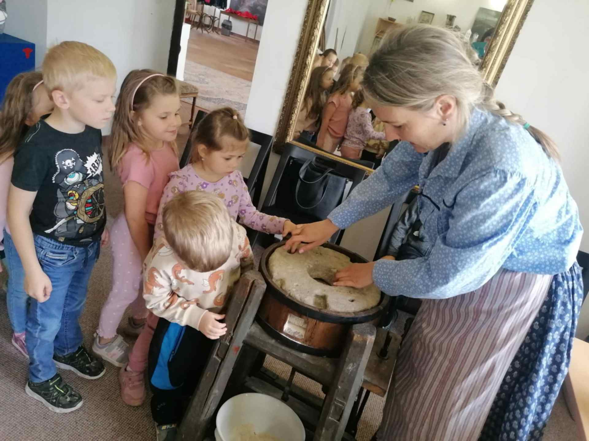 Během poutavého programu se děti mohly dovědět, jak se z obilí stává mouka, co všechno je potřeba k upečení chleba a jaká byla cesta tohoto základního pokrmu v historii. Nechyběla ani praktická část – děti si samy vyzkoušely mletí obilí na ručním mlýnku a mohly si „vyválet“ chlebovou placku, kterou po upečení s chutí ochutnaly.