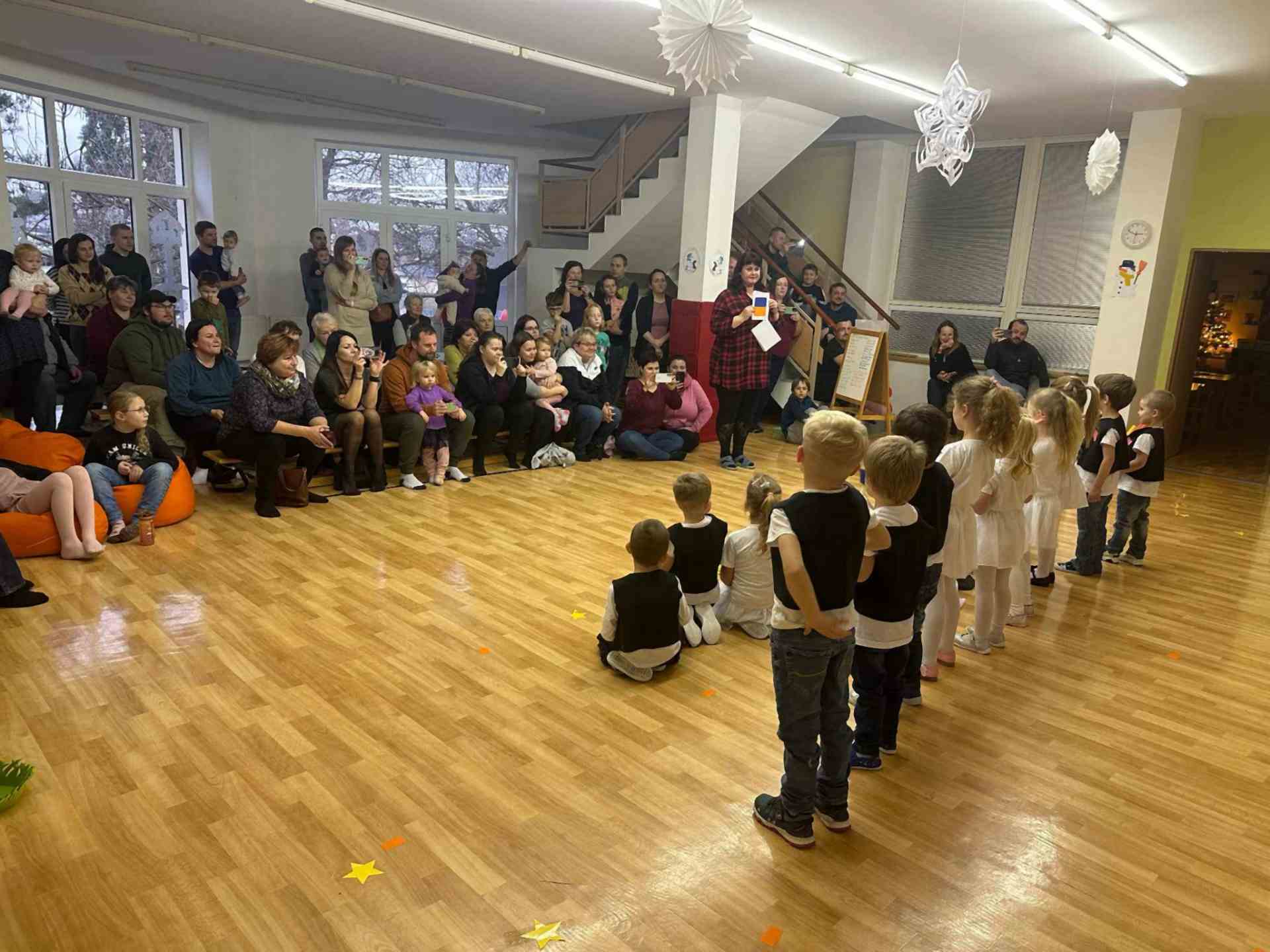 V pondělí 16. prosince se třída Hvězdiček rozezněla vánočními koledami a dětským smíchem. Děti si pro své rodiče připravily nezapomenutelnou vánoční besídku plnou písniček, básniček, tanečků, hudebních čísel a zvonečků. Celým programem provázela vánoční atmosféra plná upřímného nadšení, kterou umocnila i krásná výzdoba tělocvičny, kde vánoční besídka probíhala.