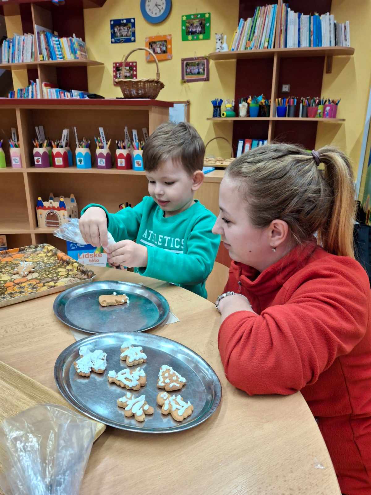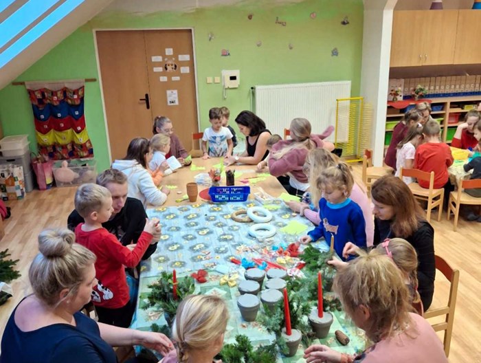 V úterý 26. 11. 2024 jsme si ve třídě uspořádali v příjemné vánoční atmosféře vánoční tvoření. Děti s rodiči a prarodiči si mohly vyrobit vánoční svícny a několik druhů dalších dekorací (věnečky, stromečky) z různých materiálů. Společně také všichni pomáhali zdobit vánoční perníčky na vánoční jarmark. Příjemnou atmosféru