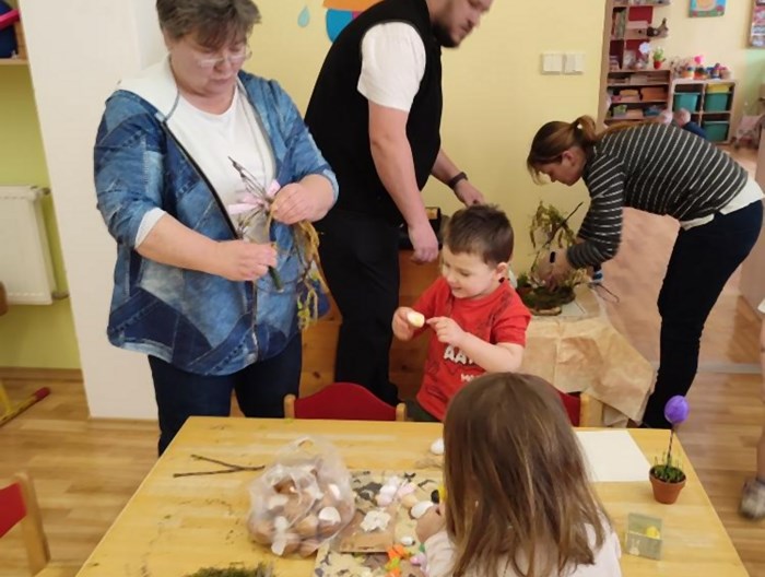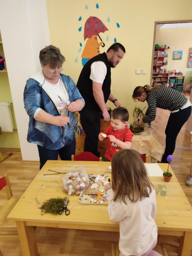 V rámci velikonočního tvoření si rodiče společně s dětmi vyzkoušeli různé kreativní techniky a vyrobili si krásné velikonoční dekorace. Nechybělo zdobení vajíček, výroba věnečků, zajíčků z drátku. Děkujeme všem rodičům za účast a těšíme se na další společné akce!