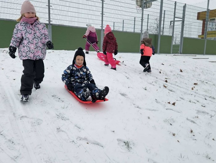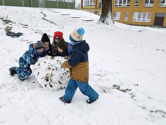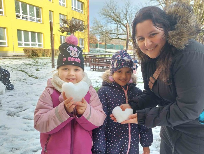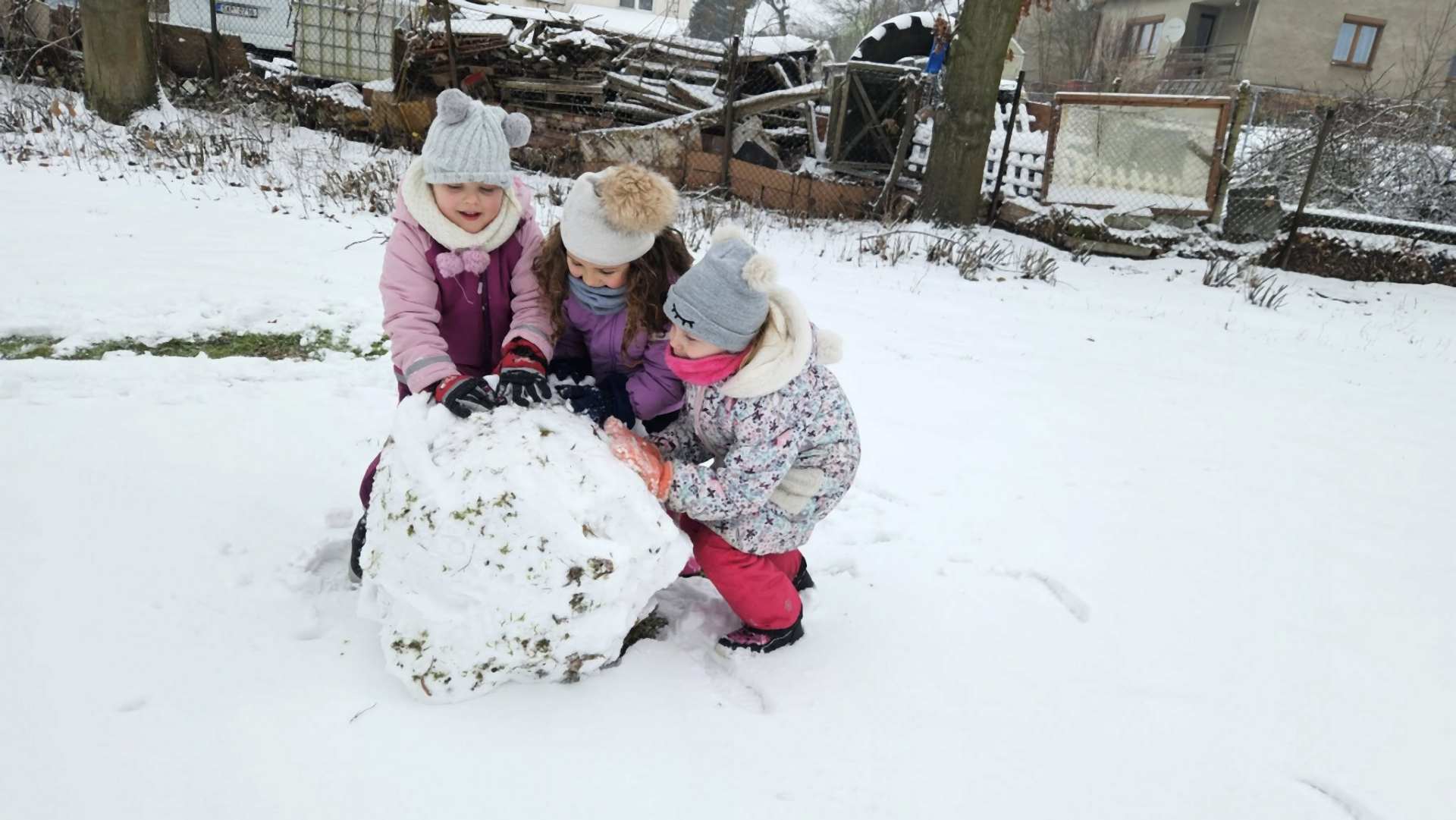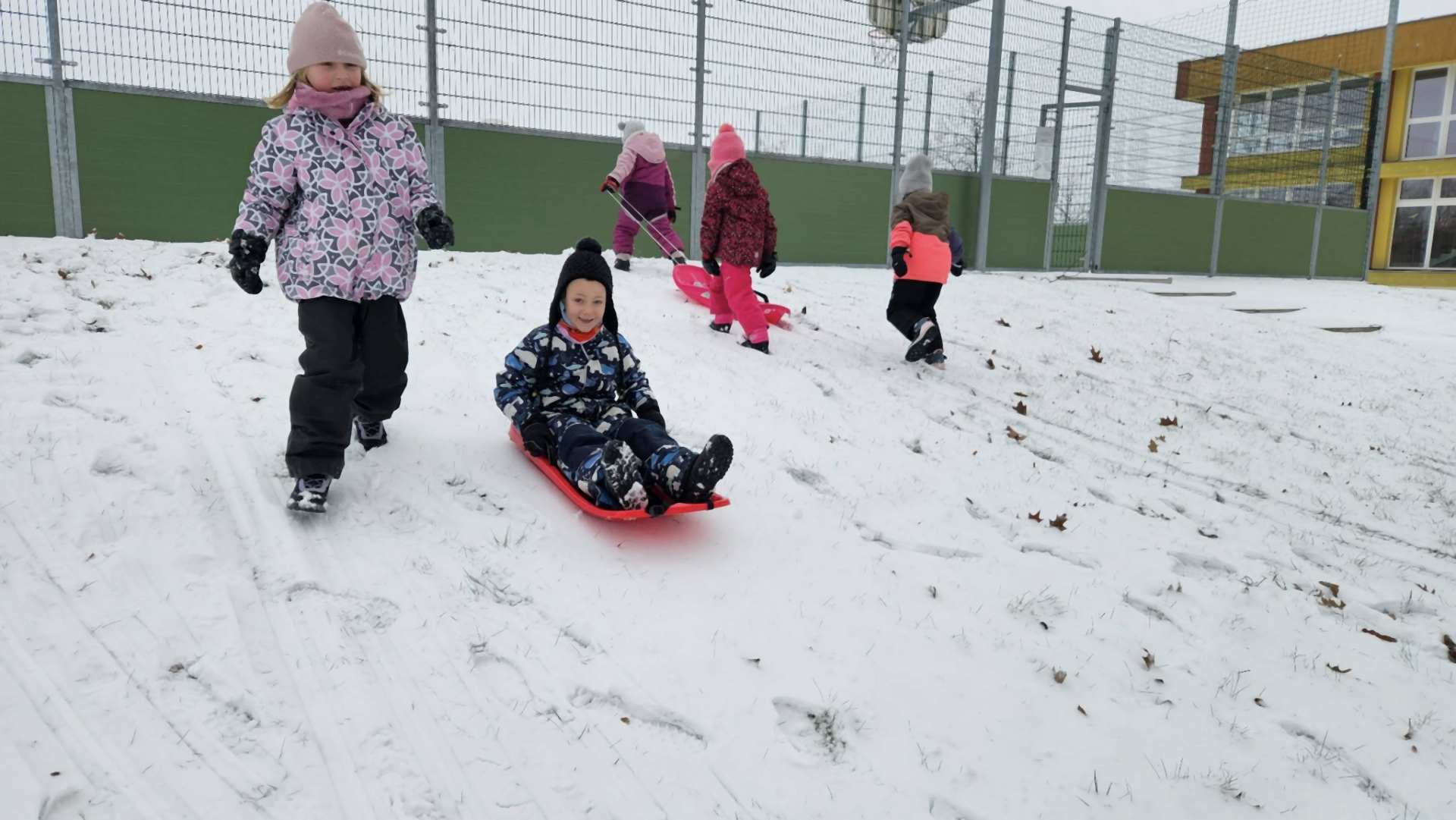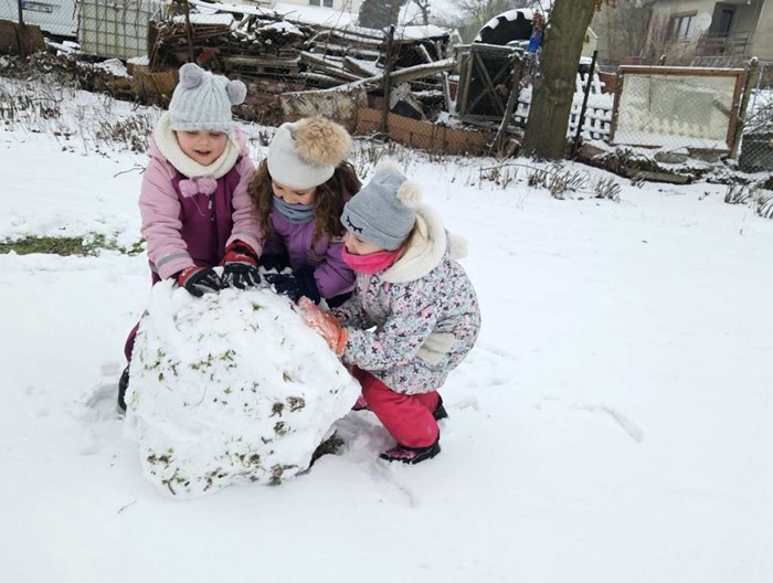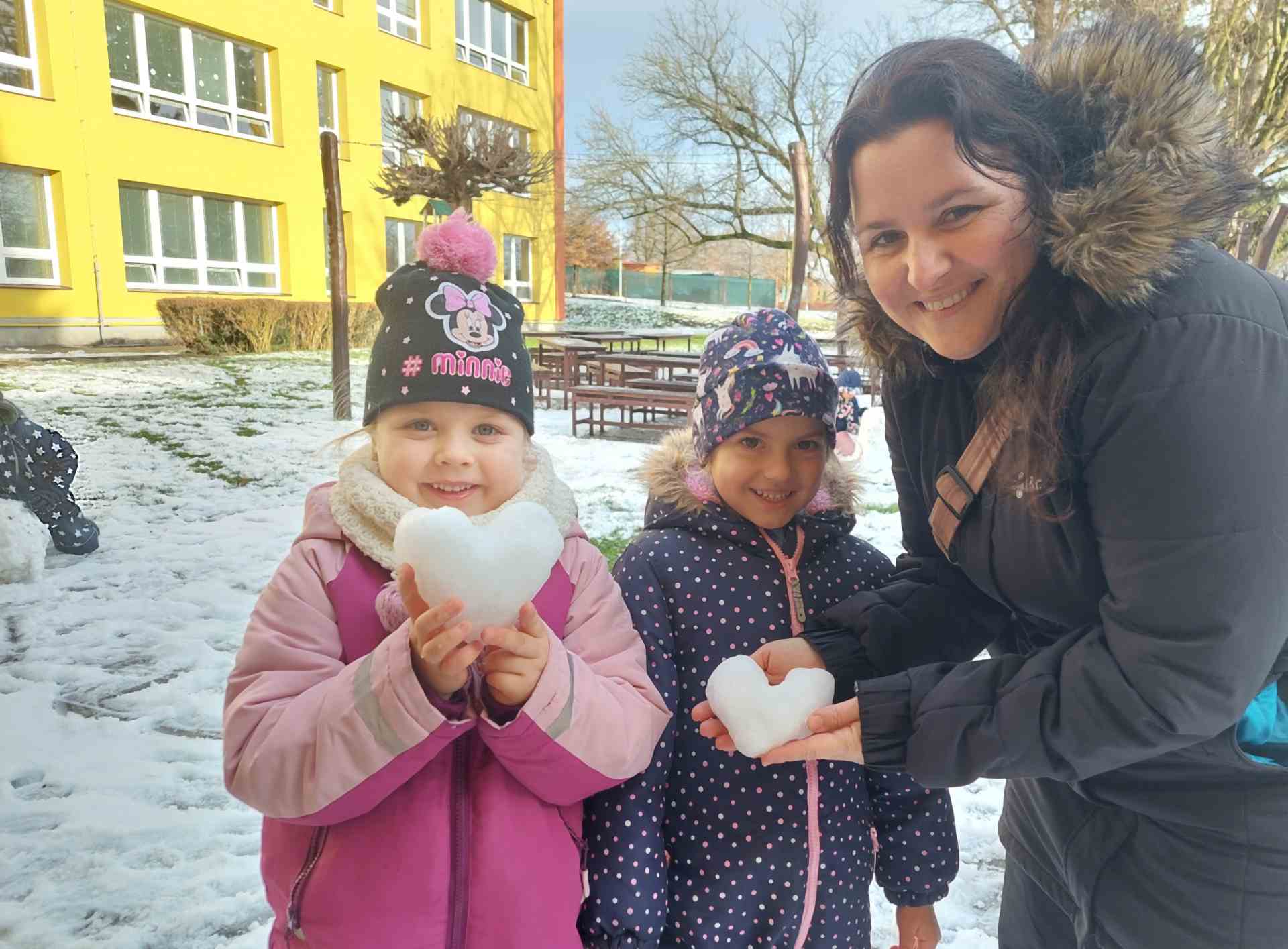 Když jsme se konečně dočkali opravdového sněhu, vydali jsme se ven, kde děti mohly naplno využít všechny své nové znalosti a dovednosti. Stavěli jsme sněhuláky, kouleli sněhové koule, dělali andílky do sněhu a společně jsme si užili pravé zimní radovánky. S úsměvem na tváři se děti vracely do školky, plné zážitků a radosti z pohybu na čerstvém vzduchu.