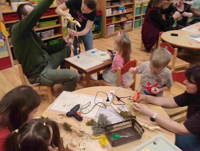 S příchodem prvních jarních paprsků se naše třída SLUNÍČKA proměnila v jednu barevnou dílnu. Přivítali jsme rodiče, prarodiče, sourozence, kteří se přišli zapojit do našeho tradičního Velikonočního tvoření. Dekujeme všem za jejich návštěvu, pomoc a skvělou náladu.